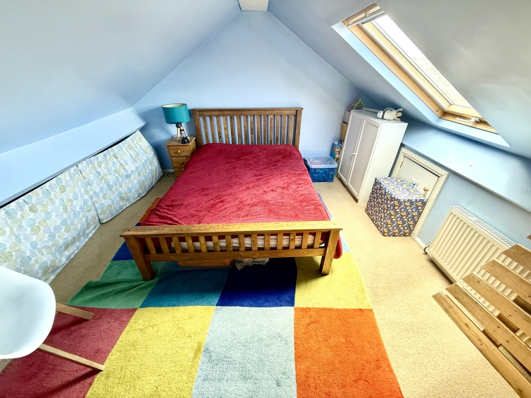 3.8354m x 2.8956m - 12'7" x 9'6"<br>Velux window to the rear, storage to the eaves and central heating radiator.