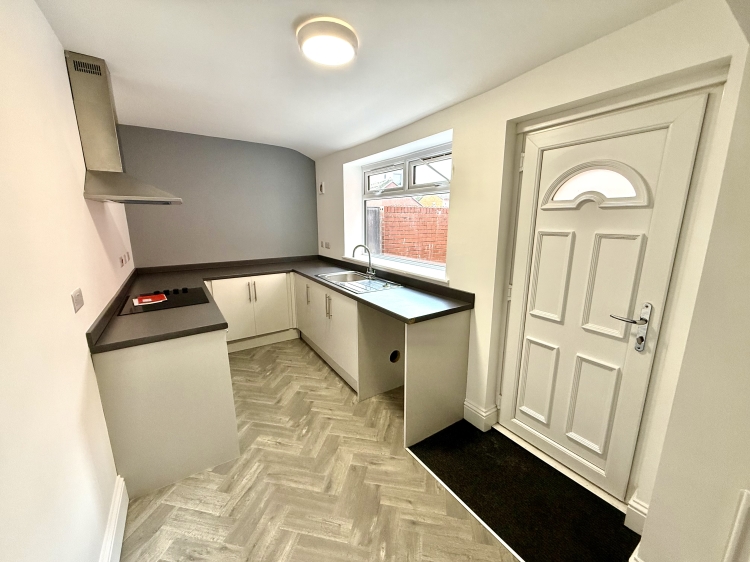 4.9784m x 2.2098m - 16'4" x 7'3"<br>Fitted with a range of modern wall and base units having contrasting work surfaces and matching splashback. Incorporating a stainless steel sink unit with mixer tap and drainer. Built in oven, hob and stainless steel extractor hood. Double glazed window to the side, UPVC external door, single central heating radiator and storage cupboard.