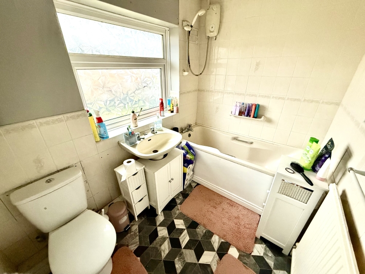 Fitted with a three piece suite comprising a panel bath, pedestal wash hand basin and low level WC. Double glazed frosted window to the rear, splashback tiling and central heating radiator.