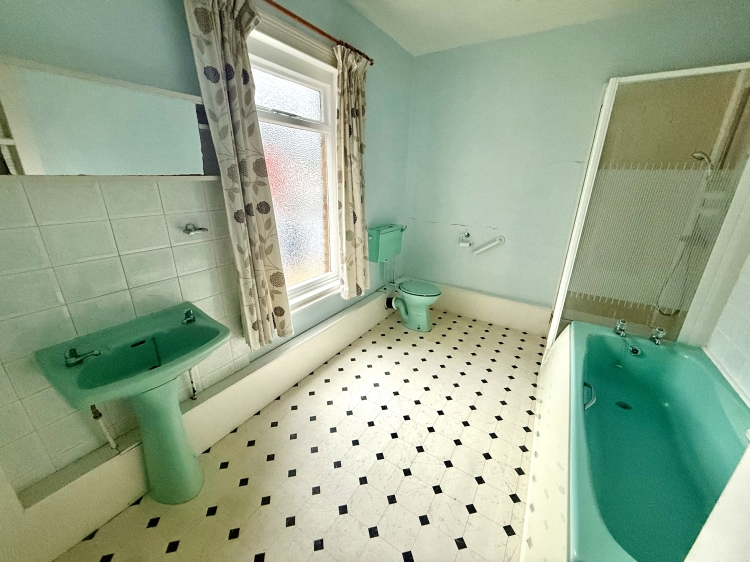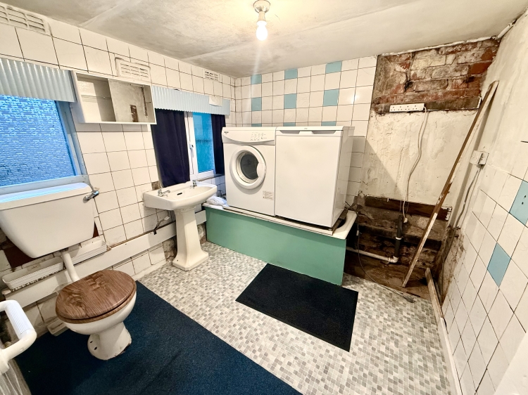 2.3622m x 2.3114m - 7'9" x 7'7"<br>Fitted with a three piece suite comprising a panel bath, pedestal wash hand basin and low level WC. Double glazed UPVC frosted window to the side and a frosted single glazed window and splashback tiling.