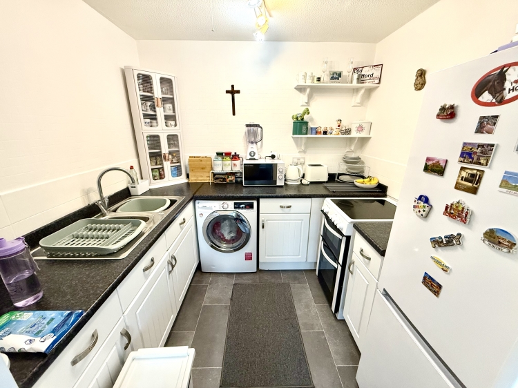 2.3368m x 2.1336m - 7'8" x 7'0"<br>Fitted with a range of the 'shaker white' base units, having contrasting work surfaces, incorporating a stainless steel sink unit with mixer tap and drainer. Splashback tiling and plumbing for automatic washing machine.