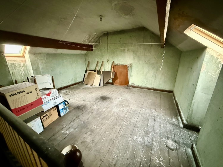 4.4704m x 4.318m - 14'8" x 14'2"<br>Velux window to the front and to the rear and storage to the eaves.