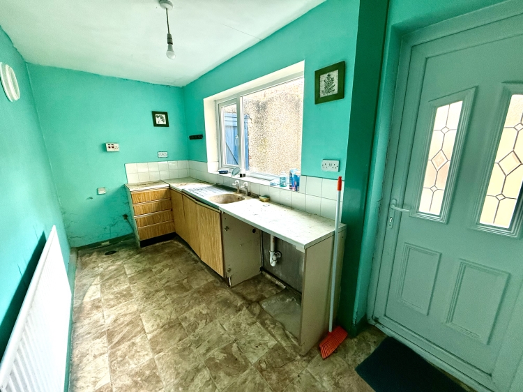 4.1148m x 1.905m - 13'6" x 6'3"<br>Fitted with a range of base units, heat resisting work surfaces, stainless steel sink unit, double glazed window to the side, splashback tiling and UPVC external door.