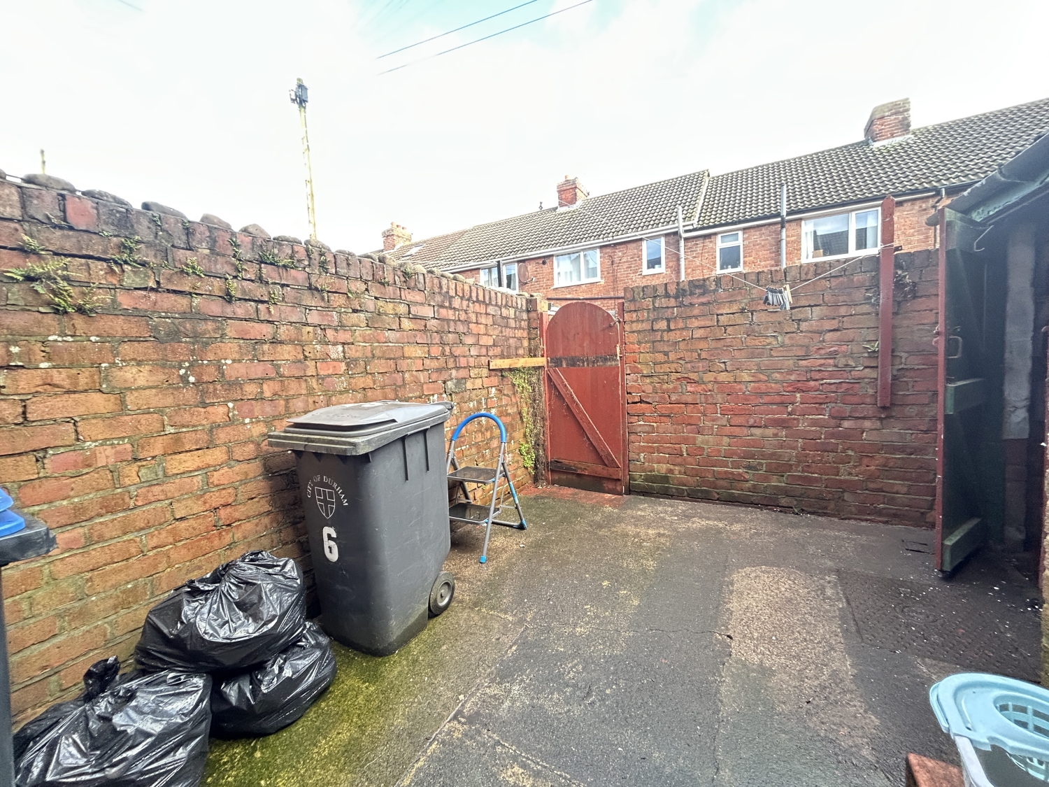 To the frontage of the property is a fence and wall enclosed garden area, laid to lawn; whilst to the rear is a wall enclosed yard with brick built storage.