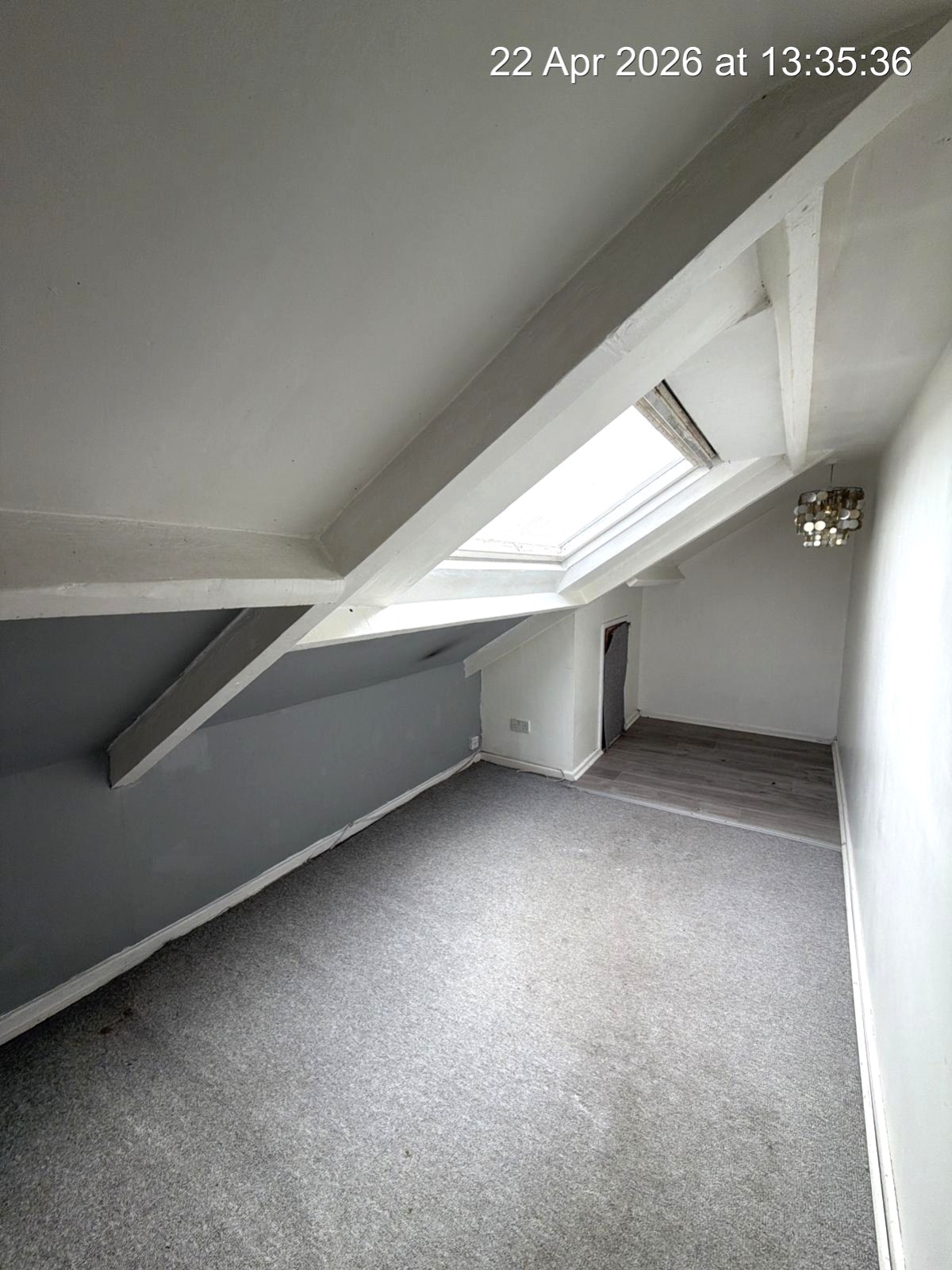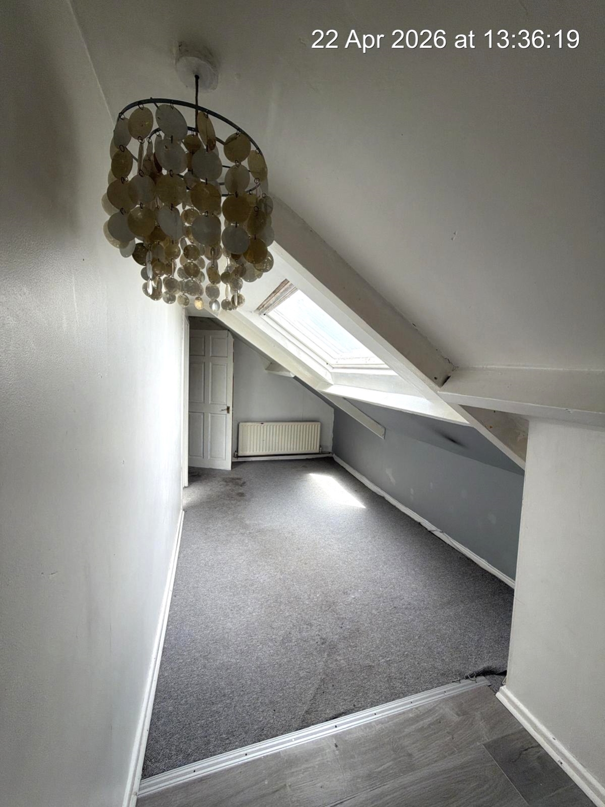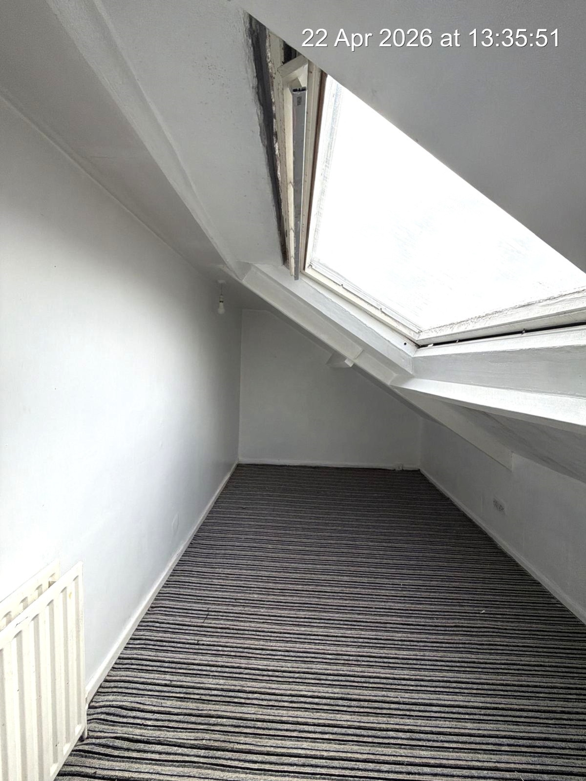 Loft window, radiator leads to adjoining room with its own loft window and radiator