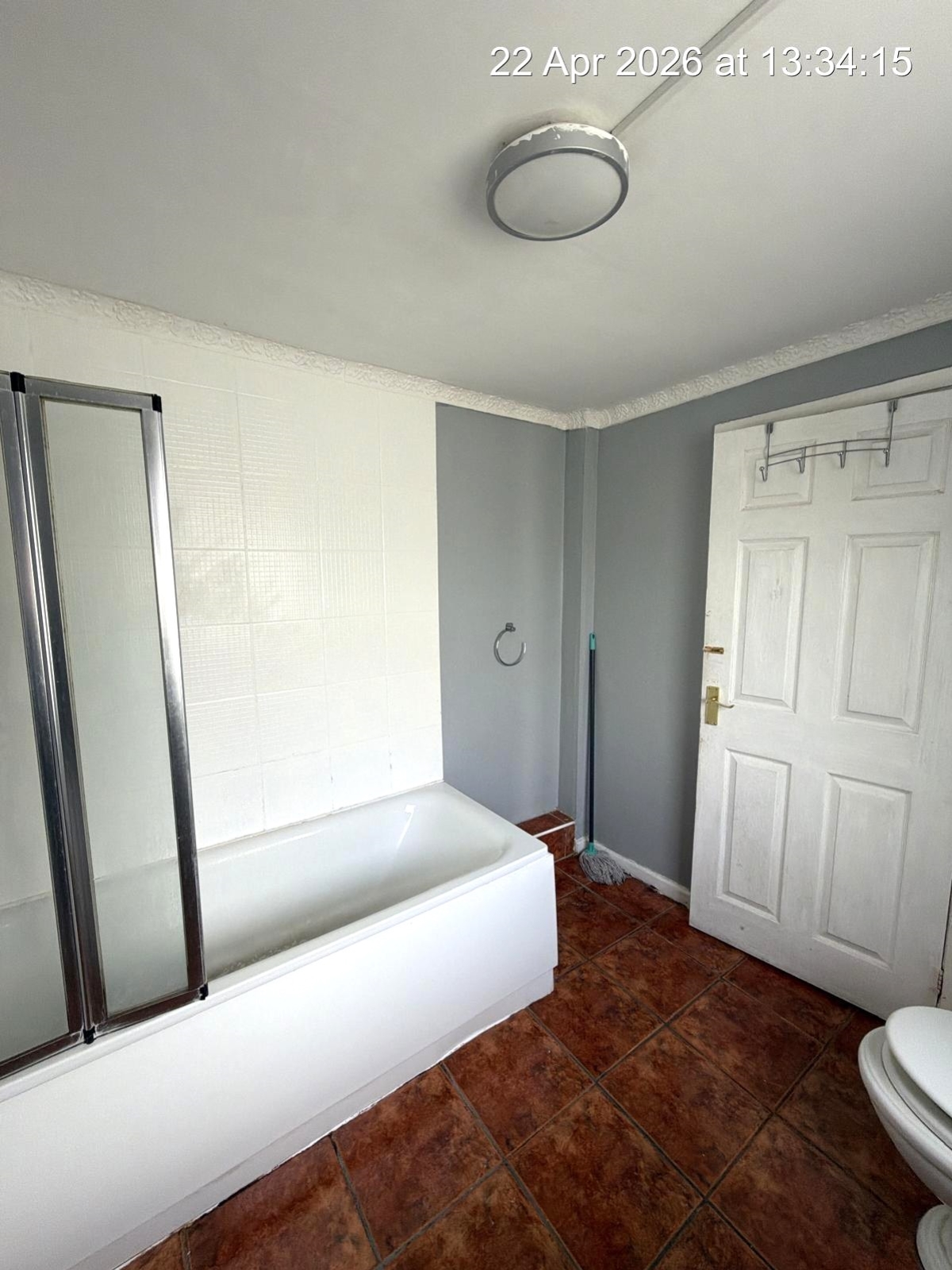 3 piece white suite with panel bath, pedestal handwash basin, low flush WC, radiator, UPVC double glazed window