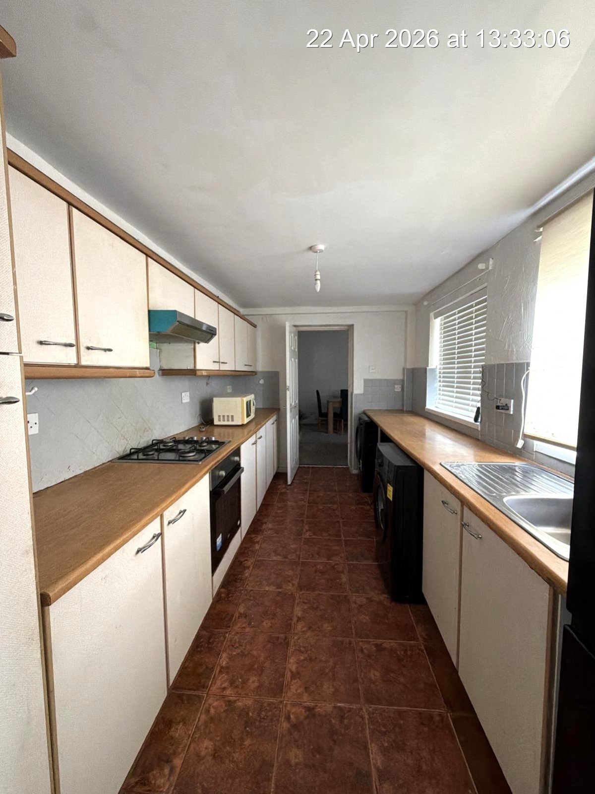 Good range or wall and base units, heat resistant work surfaces, stainless steel sink unit, integrated electric oven, gas hob and extractor, plumbing for washing machine, radiator, 2 UPVC double glazed windows