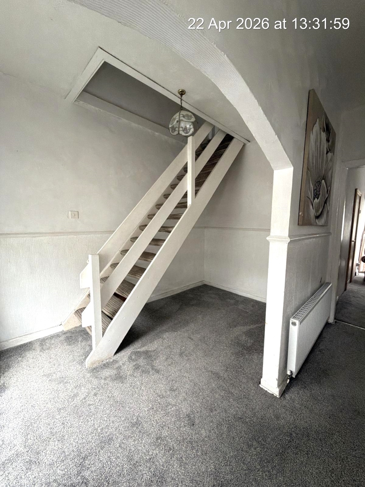 Spacious hallway, stairs leading to first floor, access to bedroom one and lounge/diner, 2 radiators, UPVC double glazed window