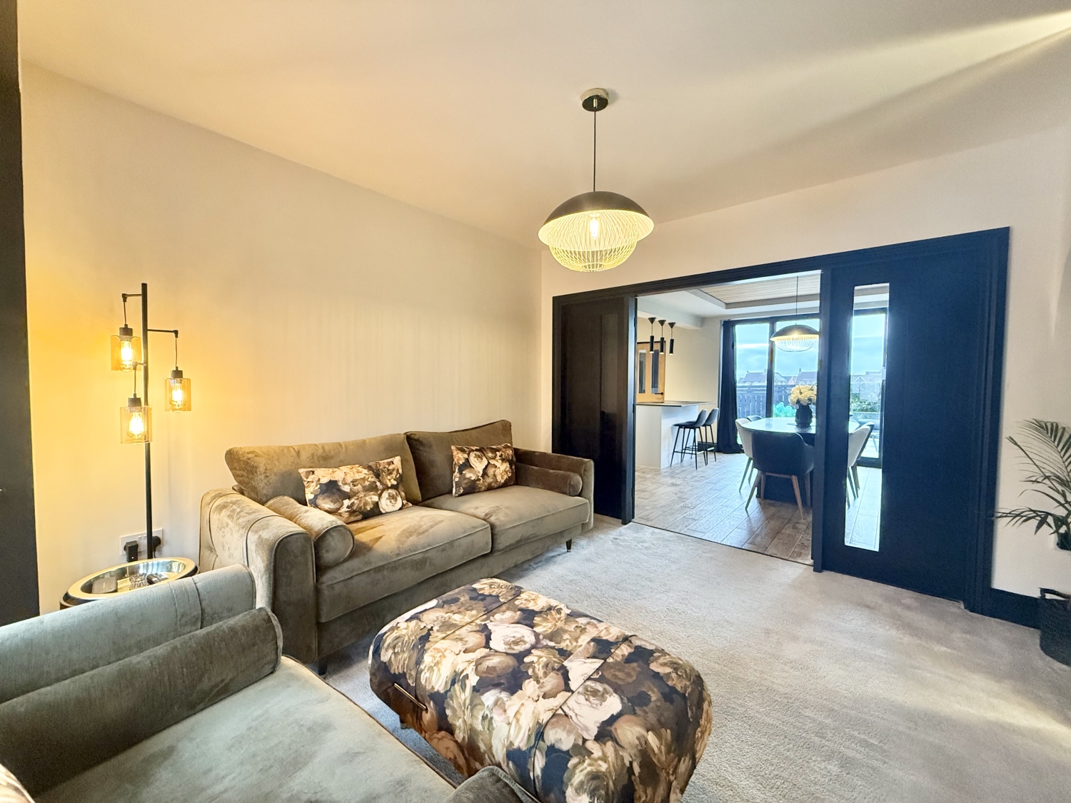 Open plan lounge, kitchen, dining comprising of good range of modern wall and base units, heat resistant work surfaces, sink unit with mixer/instant hot water tap, integrated oven, integrated microwave, integrated dishwasher, integrated fridge / freezer, kitchen island with integrated induction hob, cellar access, UPVC double glazed windows, UPVC double glazed sliding doors accessing rear garden, UPVC double glazed door accessing untiity, UPVC double glazed walk in bay window, tiling to floor throughout, vertical radiators, decorative lighting