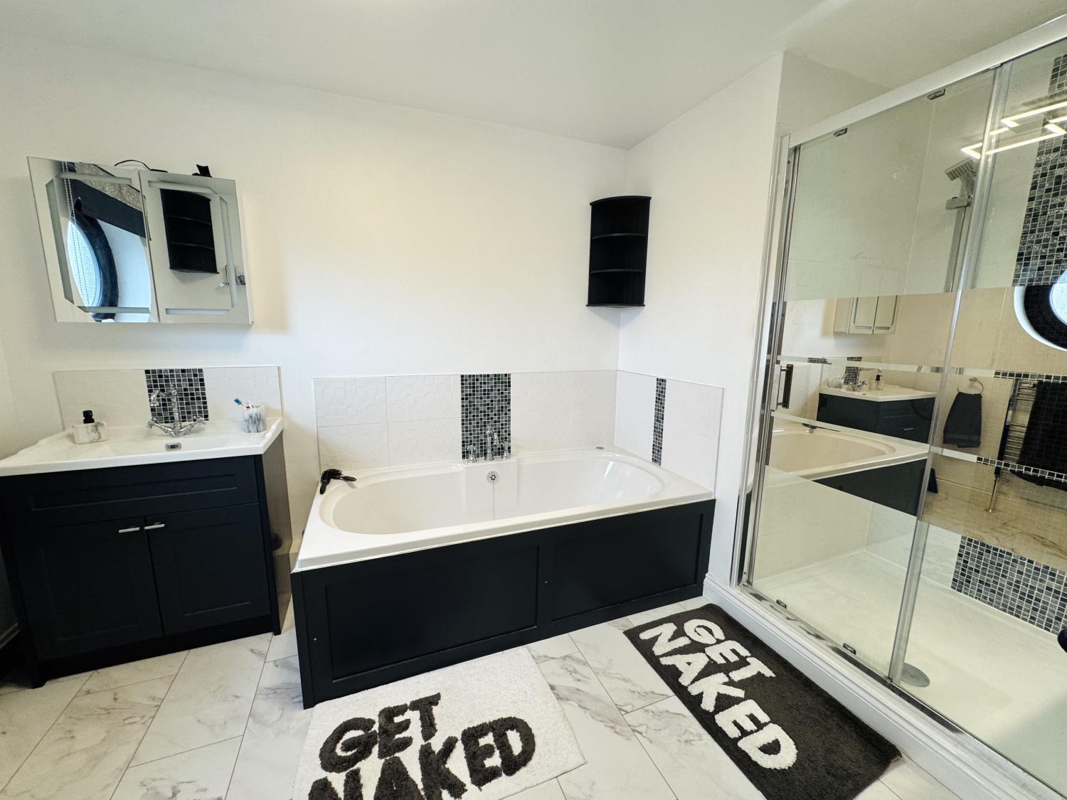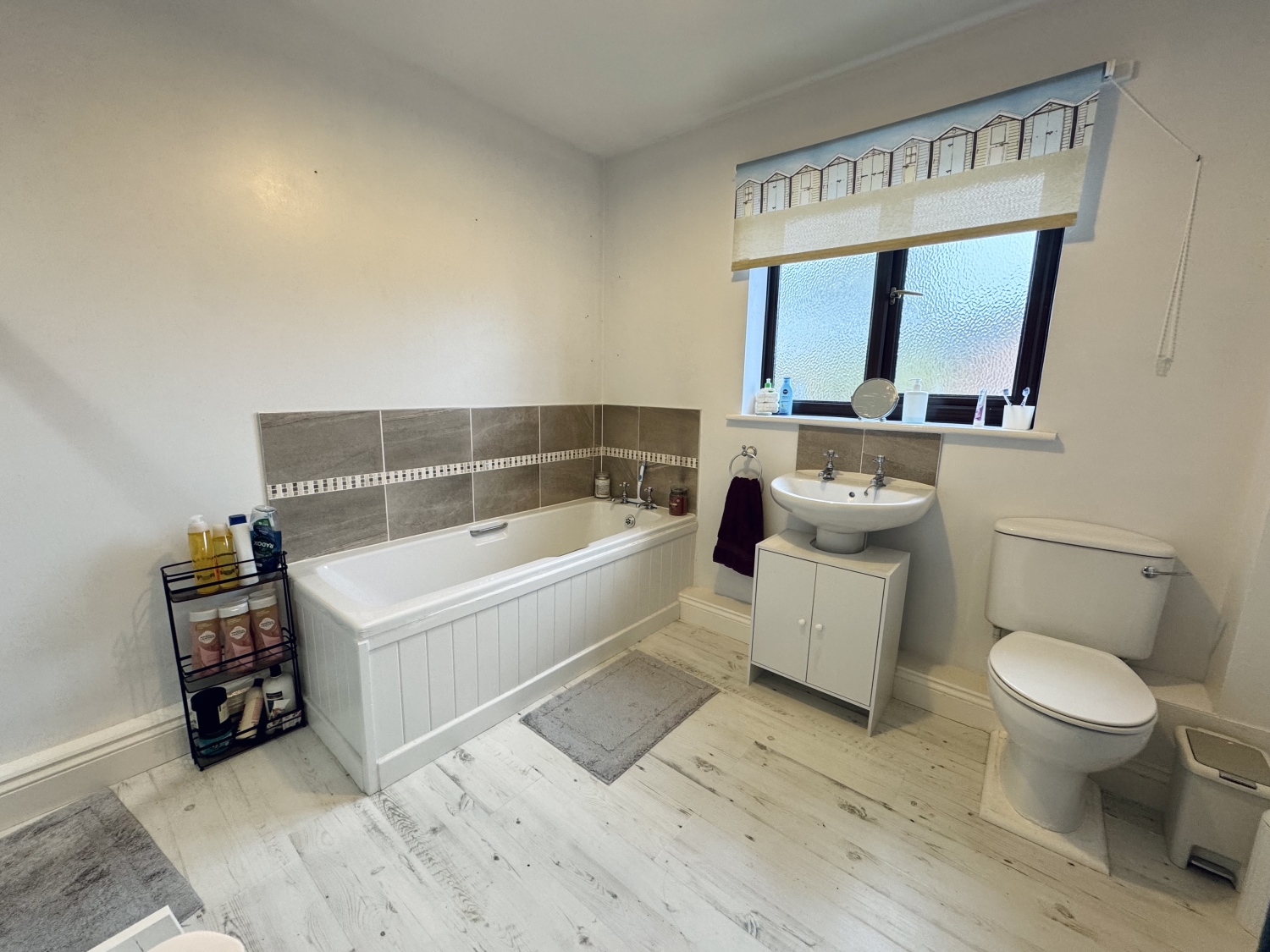 Upstairs, four generously proportioned double bedrooms each come with fitted wardrobes, ensuring ample storage for the entire family. The master suite, positioned at the front, is an absolute retreat, featuring a recently re-fitted luxury ensuite with a DOUBLE-ENDED bath, DOUBLE shower, sleek vanity with integrated storage, low-level WC, chrome heated towel rail, ceiling spotlights, and elegant tile-effect laminate flooring. Bedroom two also enjoys a front-facing position, while bedrooms three and four overlook the beautifully maintained rear garden. The spacious family bathroom is equally impressive, complete with a panelled bath, separate DOUBLE shower, pedestal hand basin, low-level WC, radiator, and stylish white-washed flooring. The loft offers fantastic standing height and exciting potential for conversion.