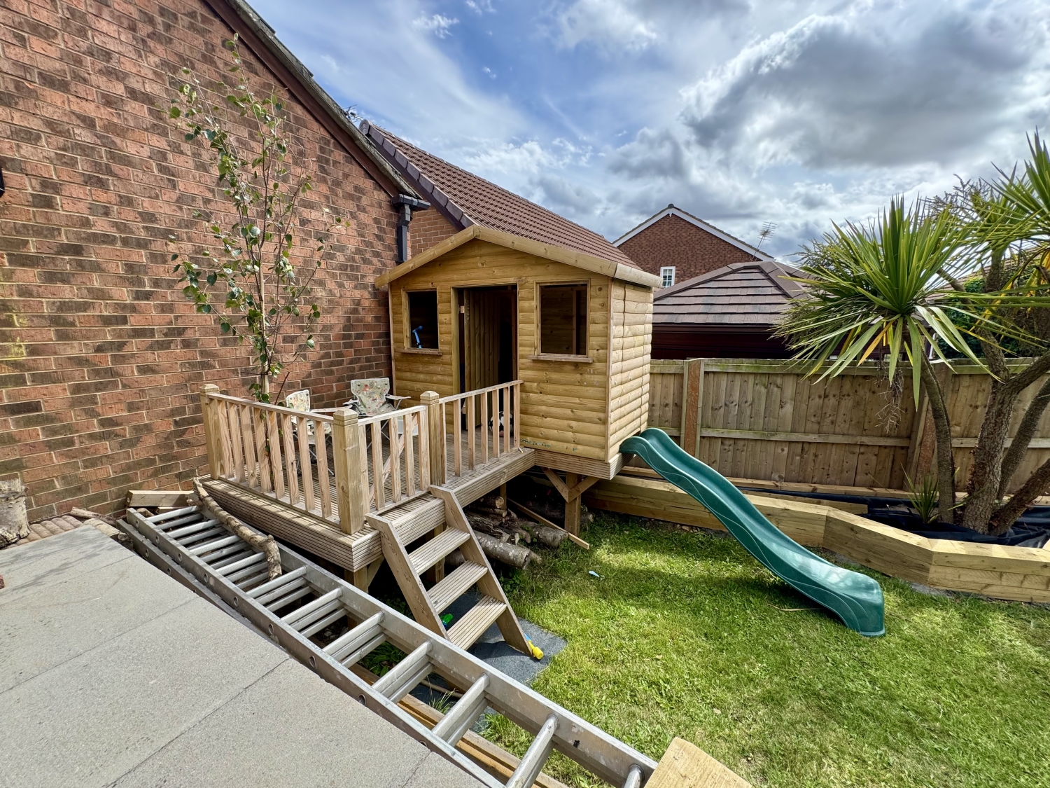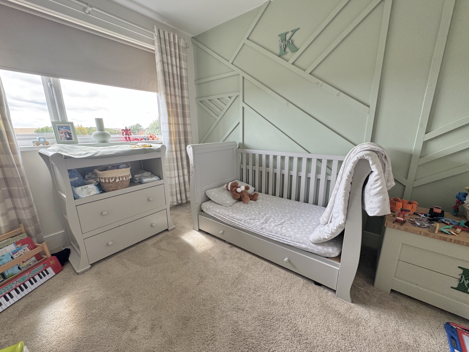 Externally, the property features a neatly maintained front garden laid to lawn, and a generous driveway providing off street parking for multiple vehicles. The integrated garage is fitted with a modern roller shutter door, as well as power and lighting. To the rear, the enclosed tiered garden is mainly laid to lawn with a dedicated seating area—ideal for relaxing or entertaining. A side outbuilding offers additional storage space.