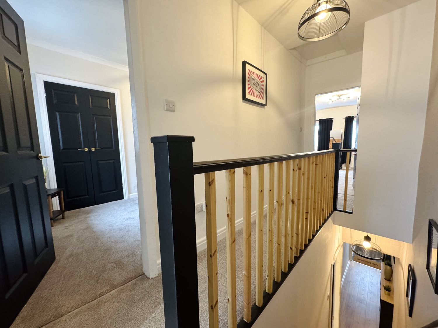 The first-floor landing offers access to the loft (via a hatch) and houses an additional storage cupboard—perfect for linens, cleaning supplies, or seasonal storage.