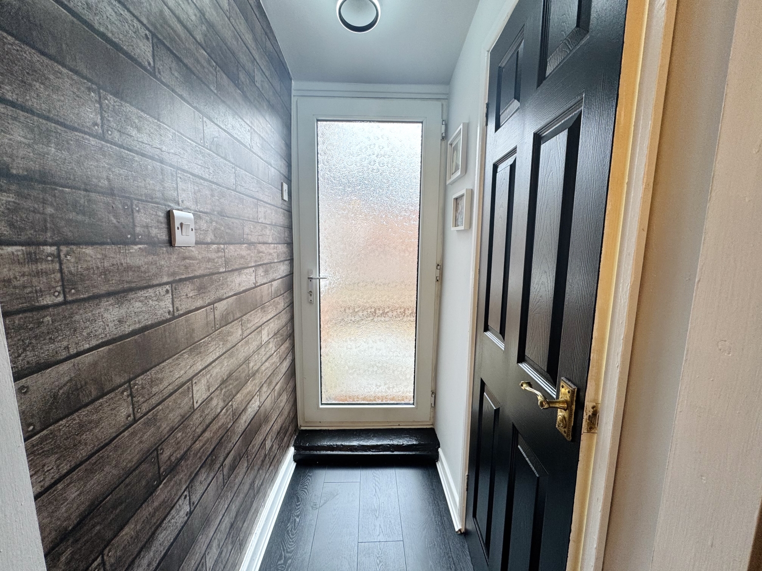 The rear hall includes a uPVC door that provides access to the private rear yard, and also leads to a ground floor W/C, a convenient addition for family life or visiting guests.