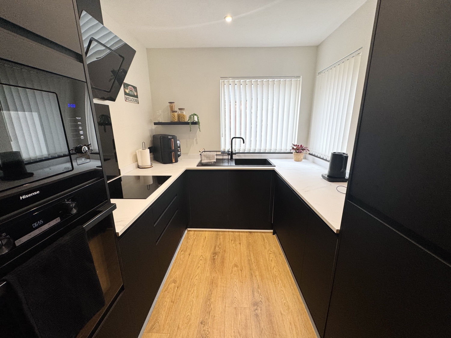 Originally a three-bedroom home, this property has been thoughtfully reconfigured and extended to offer a more generous internal layout, boasting two well-proportioned double bedrooms, ample built-in storage, and contemporary finishes throughout. The current owners have invested significantly in the property, with improvements including a full rewire, full redecoration, and the installation of a brand-new Howdens fitted kitchen—ensuring a stress-free move for the new owners.