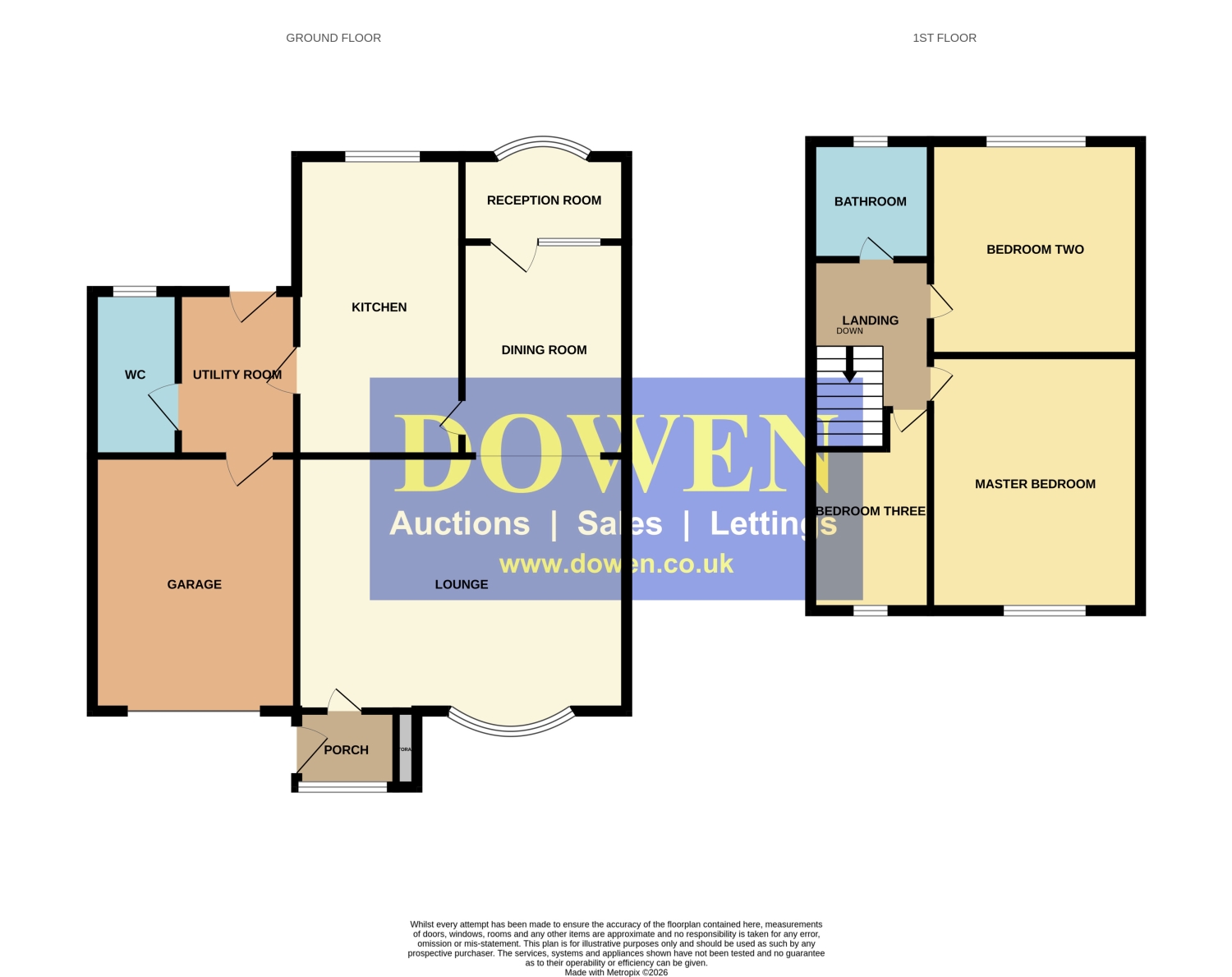 The accommodation begins with an entrance porch featuring a composite door and useful storage, leading through a further uPVC double‑glazed door into a spacious lounge/diner with a uPVC bow window. To the rear sits an additional hobby/reception room, ideal as a playroom, home office or second sitting area. The galley kitchen provides access to a separate utility room, which in turn offers entry to the rear garden and internal access to the integrated garage. A ground‑floor WC completes the layout.