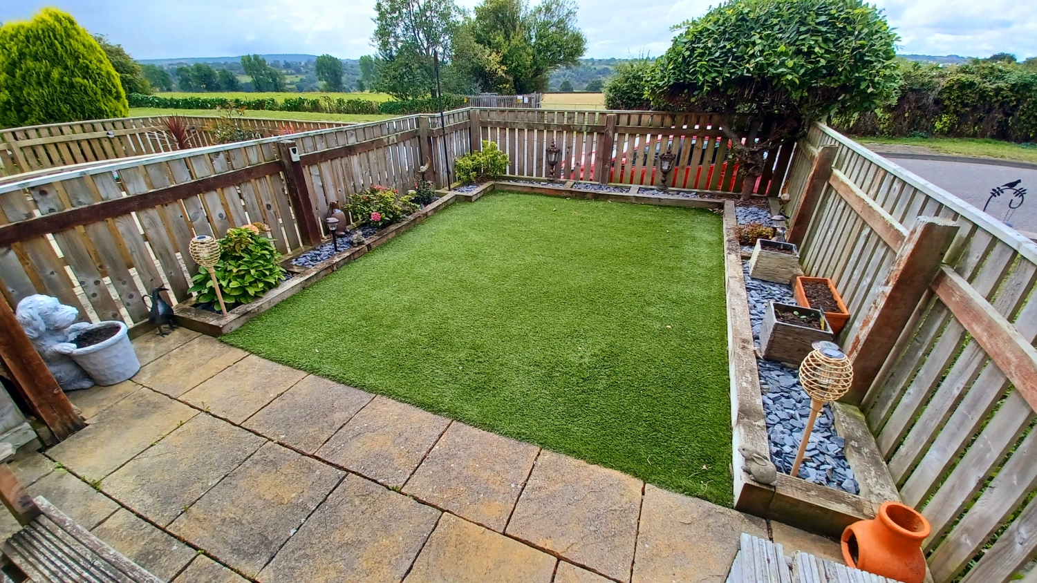 To the front of the property there is a fence enclosed attractive astro-turfed garden planted with a variety of shrubbery with flagged seating area whilst to the rear there is a wall enclosed yard plus brick driveway providing off road parking and in turn leads too:-