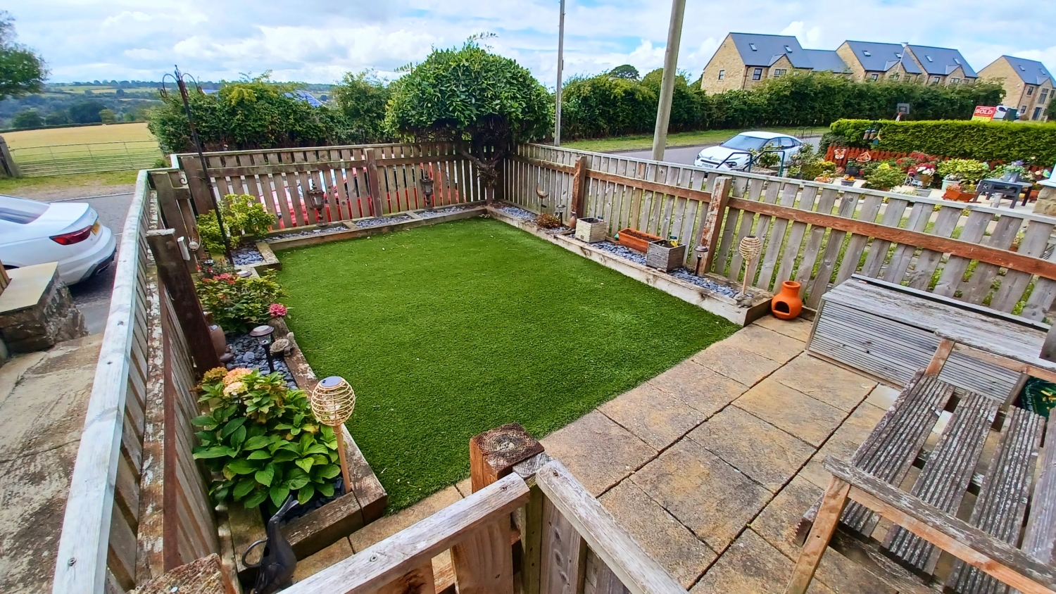 To the rear of the property is a large detached garage, providing excellent versatility – whether used for secure off-road parking, a workshop, home office, or hobby space. In front of the garage is a private driveway, ensuring ample parking. The property also benefits from an attractive astro-turfed front garden, offering a low-maintenance yet inviting outdoor space.
