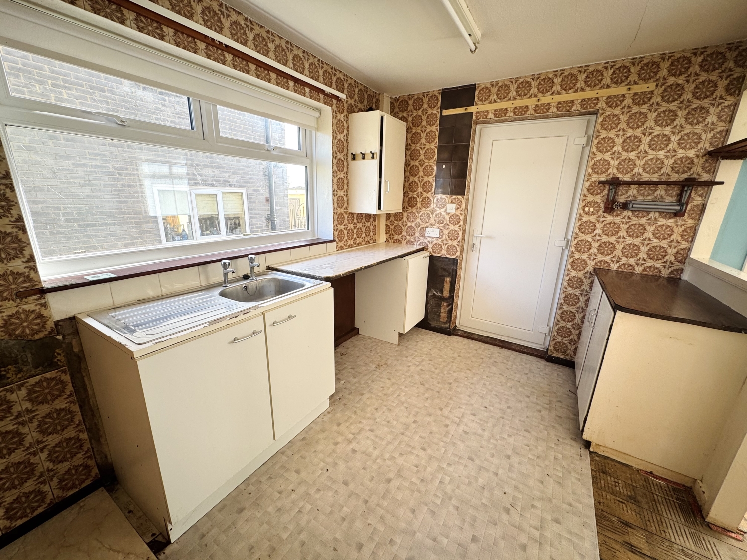 Fitted with a range of wall and base units with work surfaces, stainless steel sink with dual tap, radiator, double glazed windows to both the rear and side elevation, upvc door into the utility room
