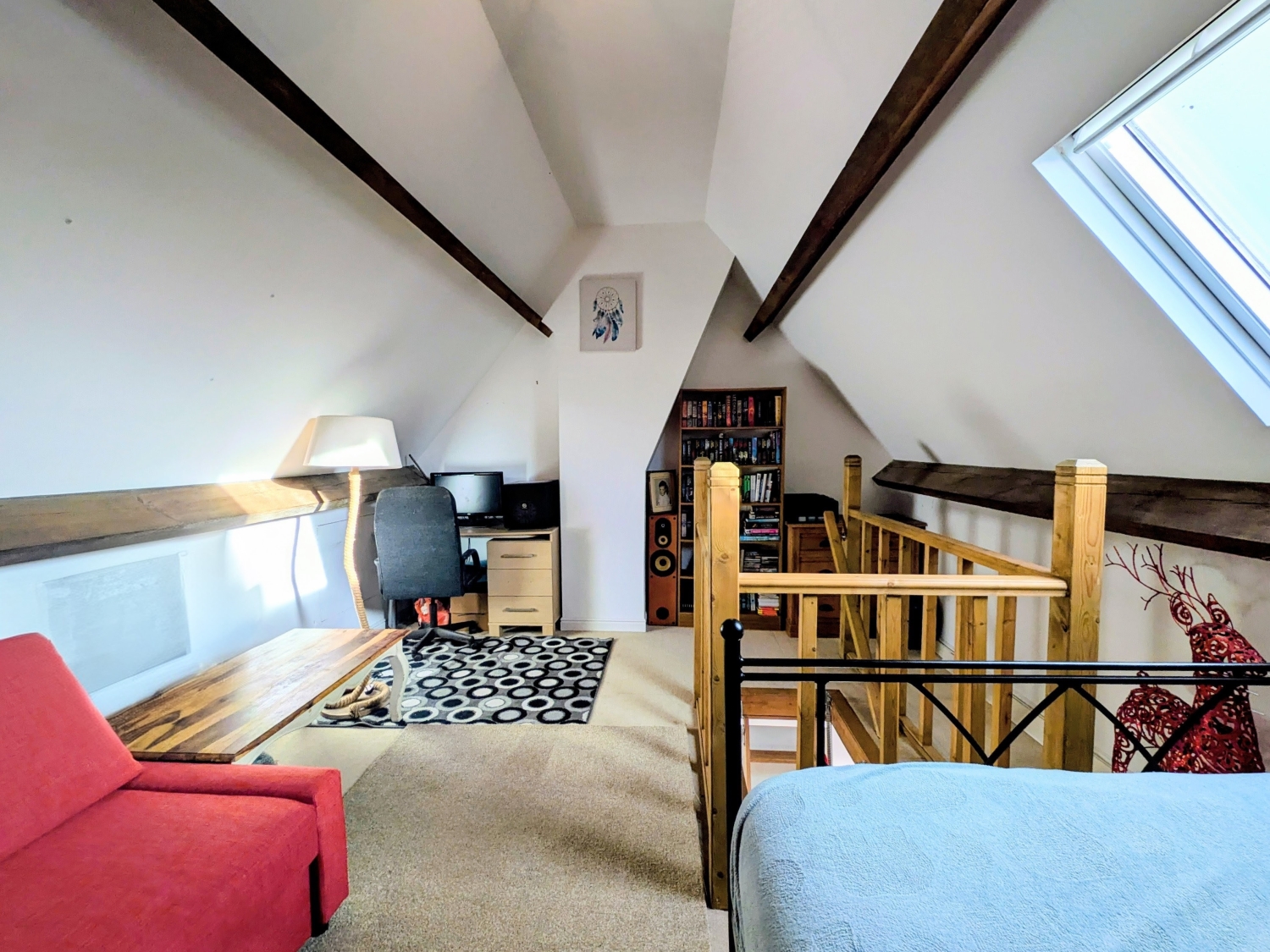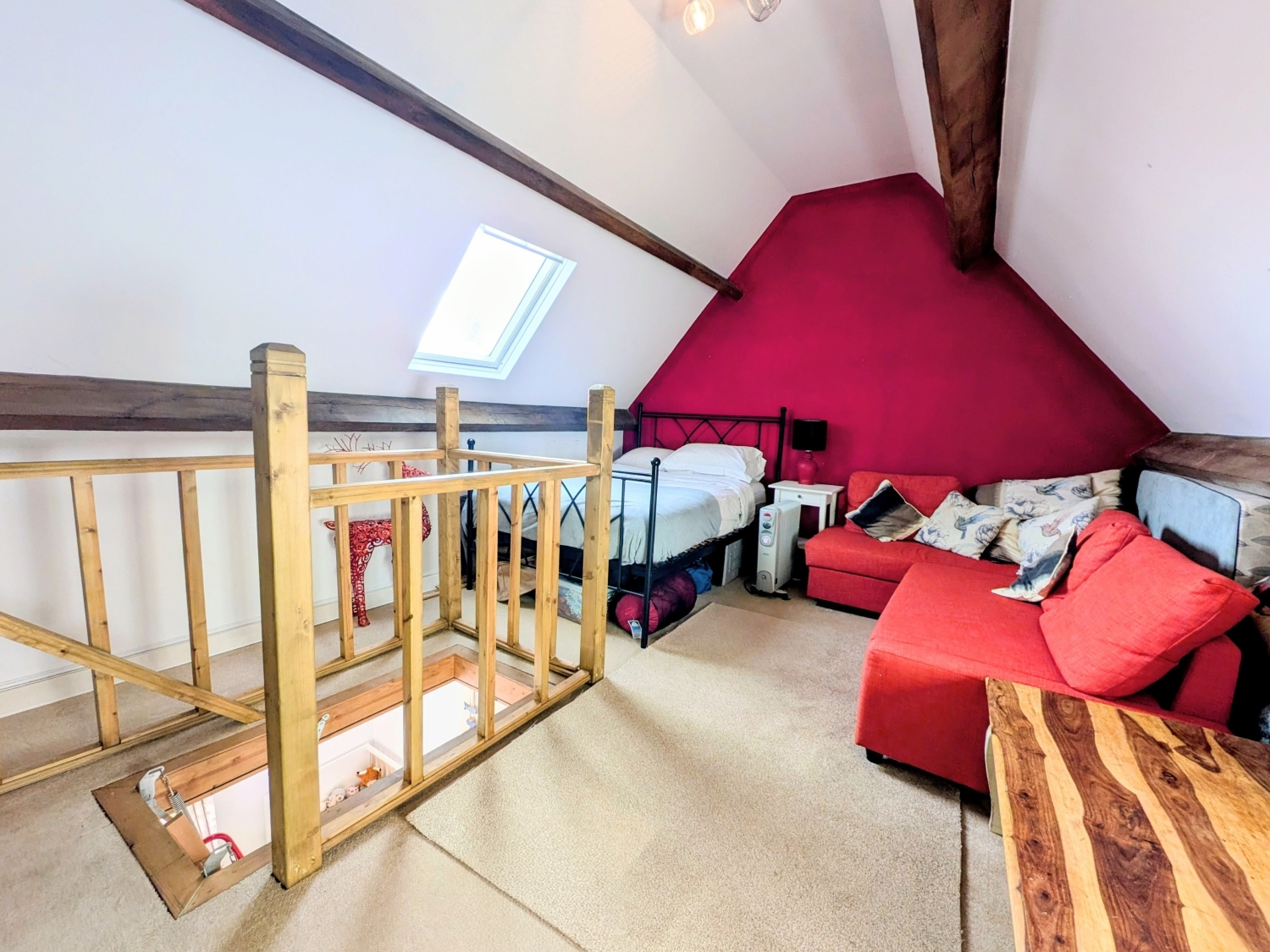 The home benefits from a versatile loft space that's fully boarded and walled, complete with a Velux window – ideal for storage or a creative retreat. The heart of the property is its spacious lounge-diner, featuring a stunning log-burning stove set within a traditional fire inglenook, complemented by an attractive wooden mantle, as well as a gorgeous wood floor which combines rustic elegance with practicality—easy to clean and perfect for busy lifestyles.