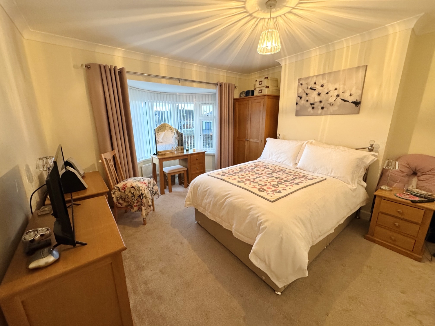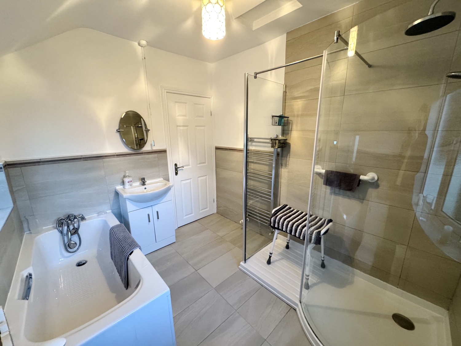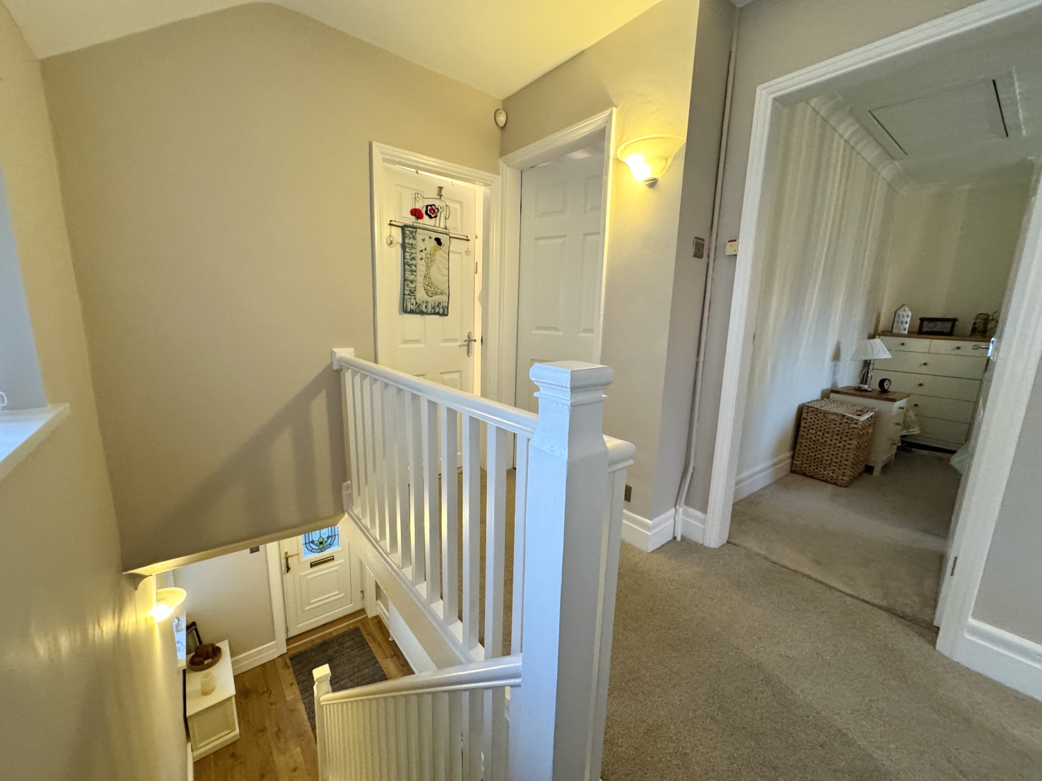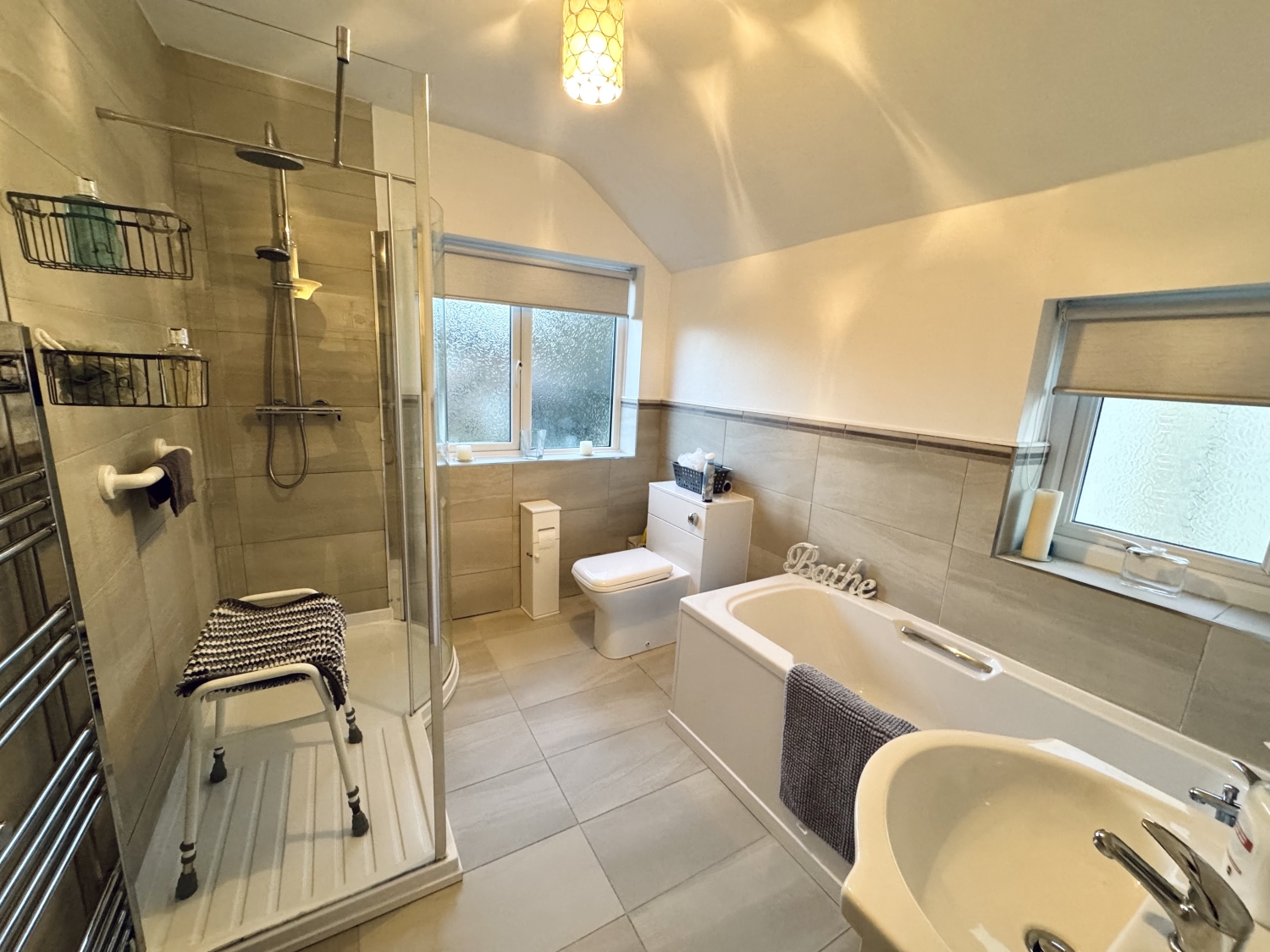 Upstairs, the landing leads to three well-proportioned bedrooms, each offering comfortable accommodation. The modern four-piece family bathroom is finished to a high standard, complete with a bath and a double shower, providing both convenience and luxury.