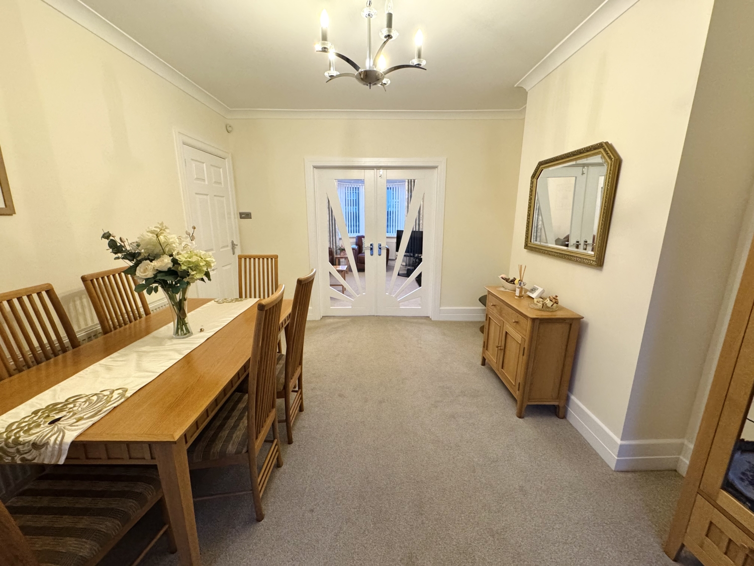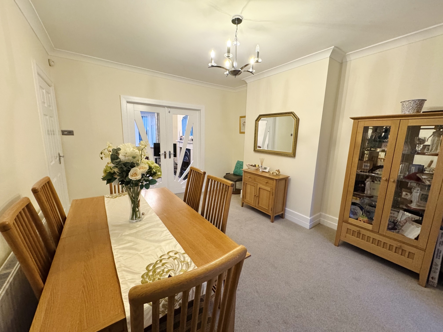 Patio doors to the rear garden, radiator, double doors into living room, coving to ceiling