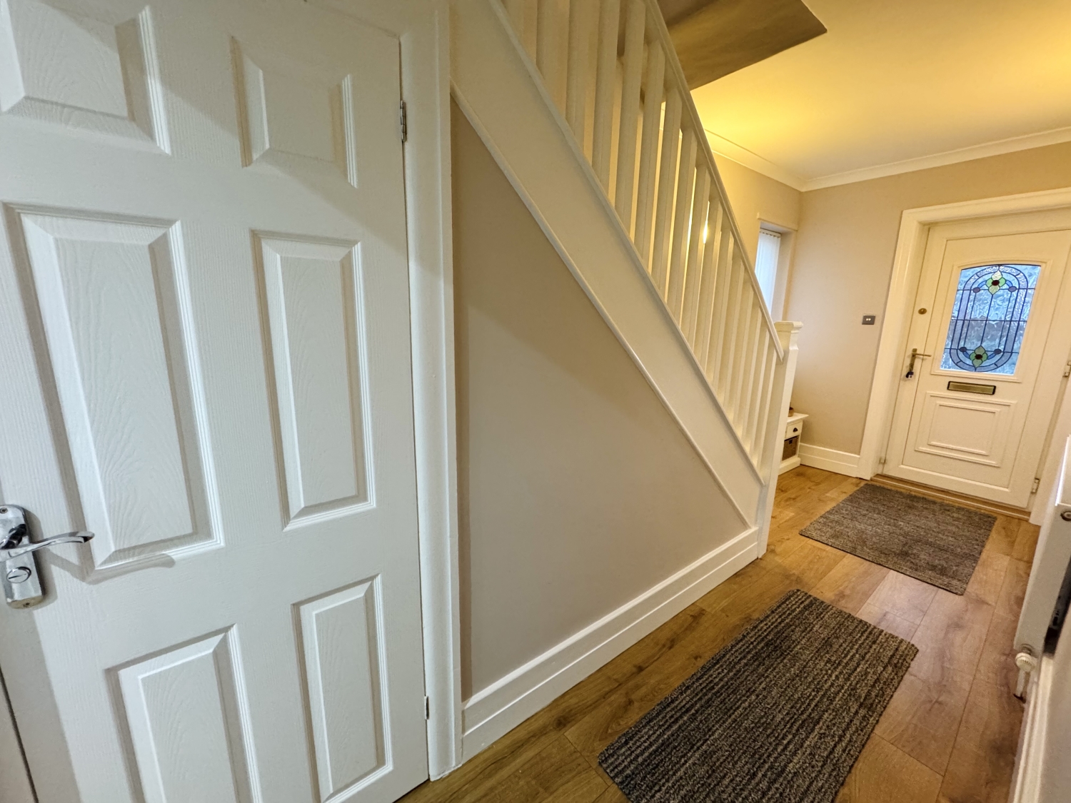 UPVC Door, radiator, coving to ceiling, stairs leading to first floor landing