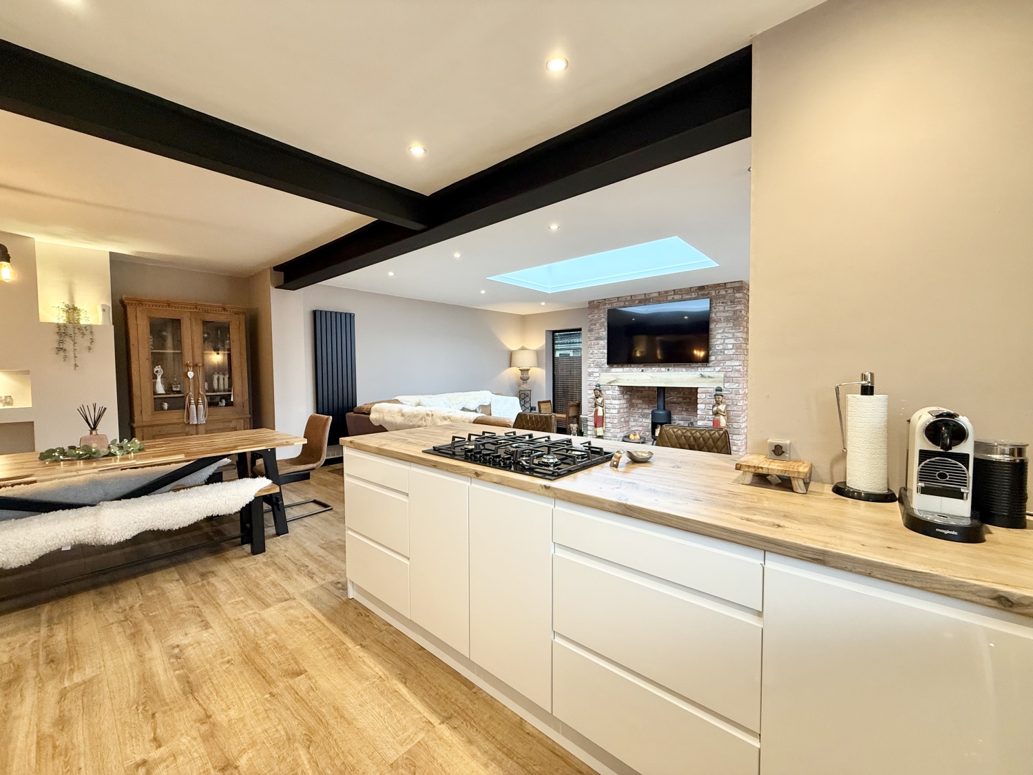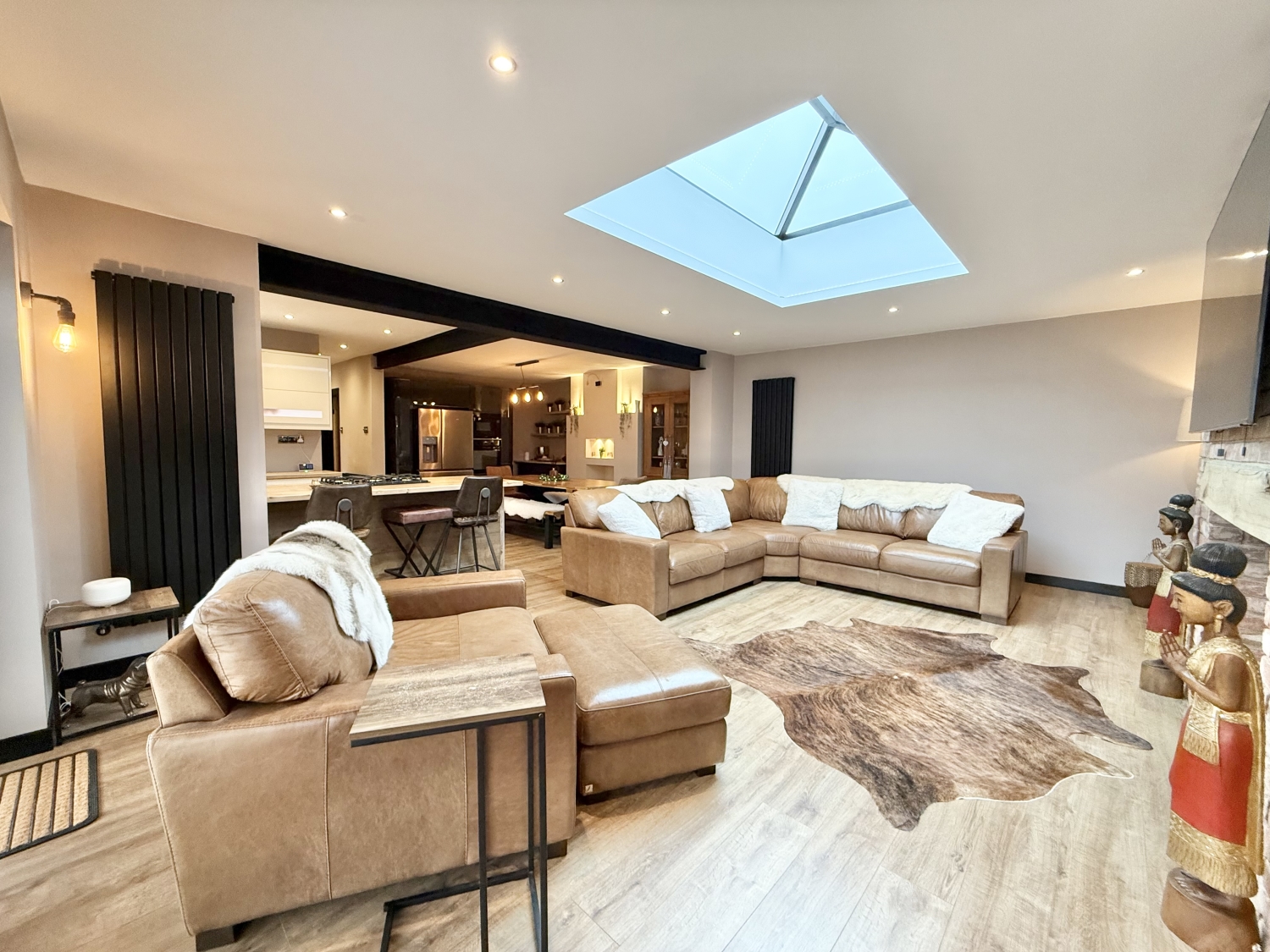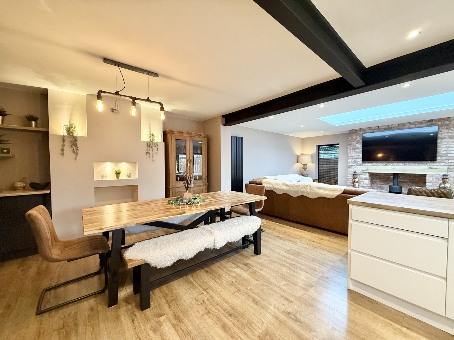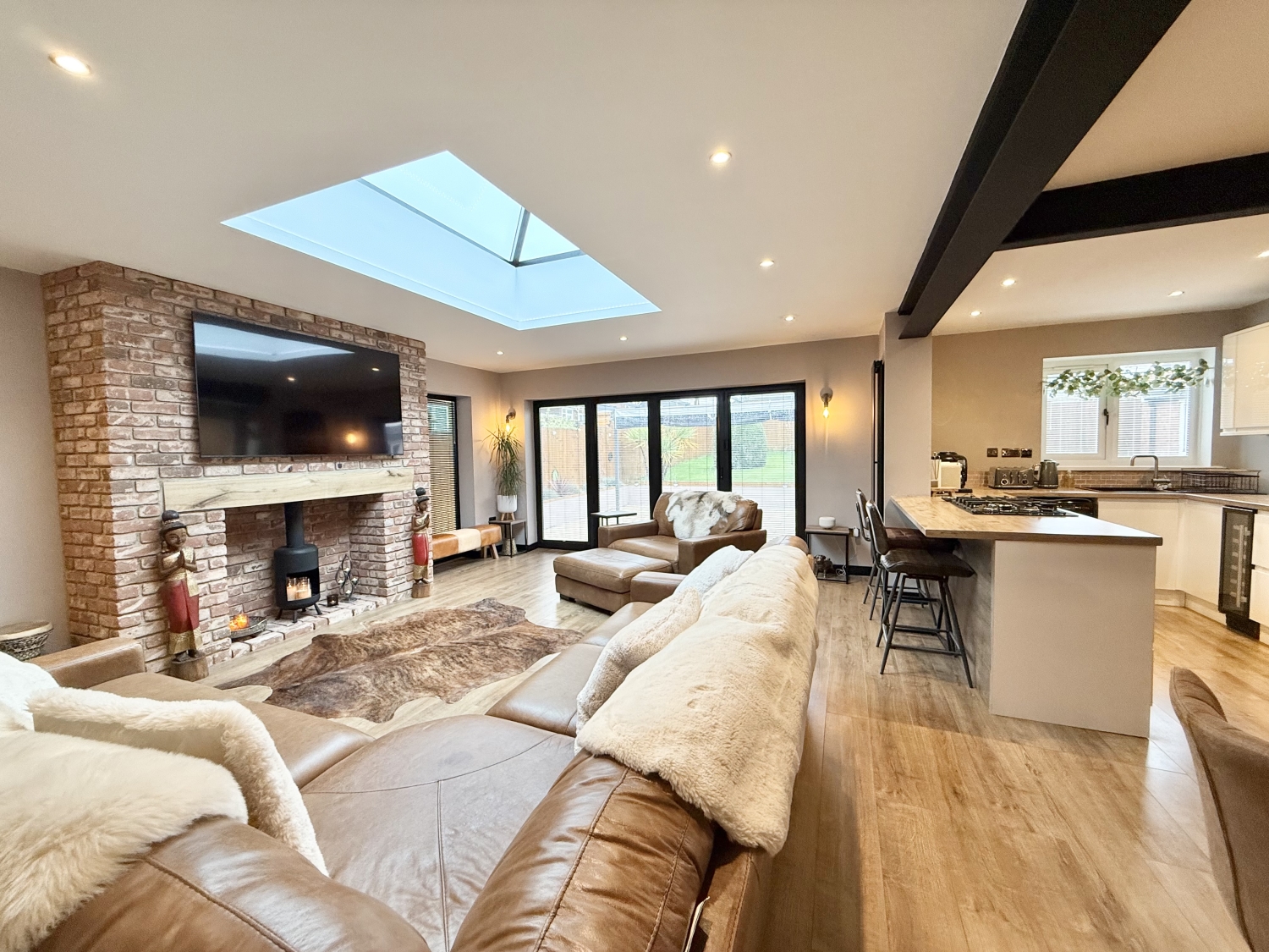 This beautifully extended two-bedroom bungalow has been significantly improved throughout and boasts a south-facing garden, making it a truly exceptional home. Perfectly located in the sought-after area of East Herrington, close to local amenities and transport links, this property is ideal for downsizers, first-time buyers, or home movers. The accommodation comprises a welcoming entrance hallway, a snug/office with stairs leading to the first-floor bedroom, a ground-floor bedroom, and a modern bathroom suite. The highlight of the home is the spectacular extended kitchen, lounge, and dining area, complete with integrated appliances, an impressive roof lantern measuring 2m x 1.5m, and bi-folding doors opening onto the landscaped south-facing garden. Externally, the rear garden offers a beautifully designed space with lawn and patio areas, complemented by an awning for outdoor comfort. To the front, there is a block-paved driveway providing parking for multiple vehicles and a detached garage with an electric roll-shutter door. Additional benefits include double glazing, gas central heating, and a newly improved layout that maximizes space and light. This stunning bungalow is ready to move into and offers a perfect blend of style and practicality.
