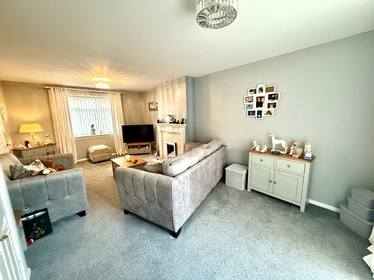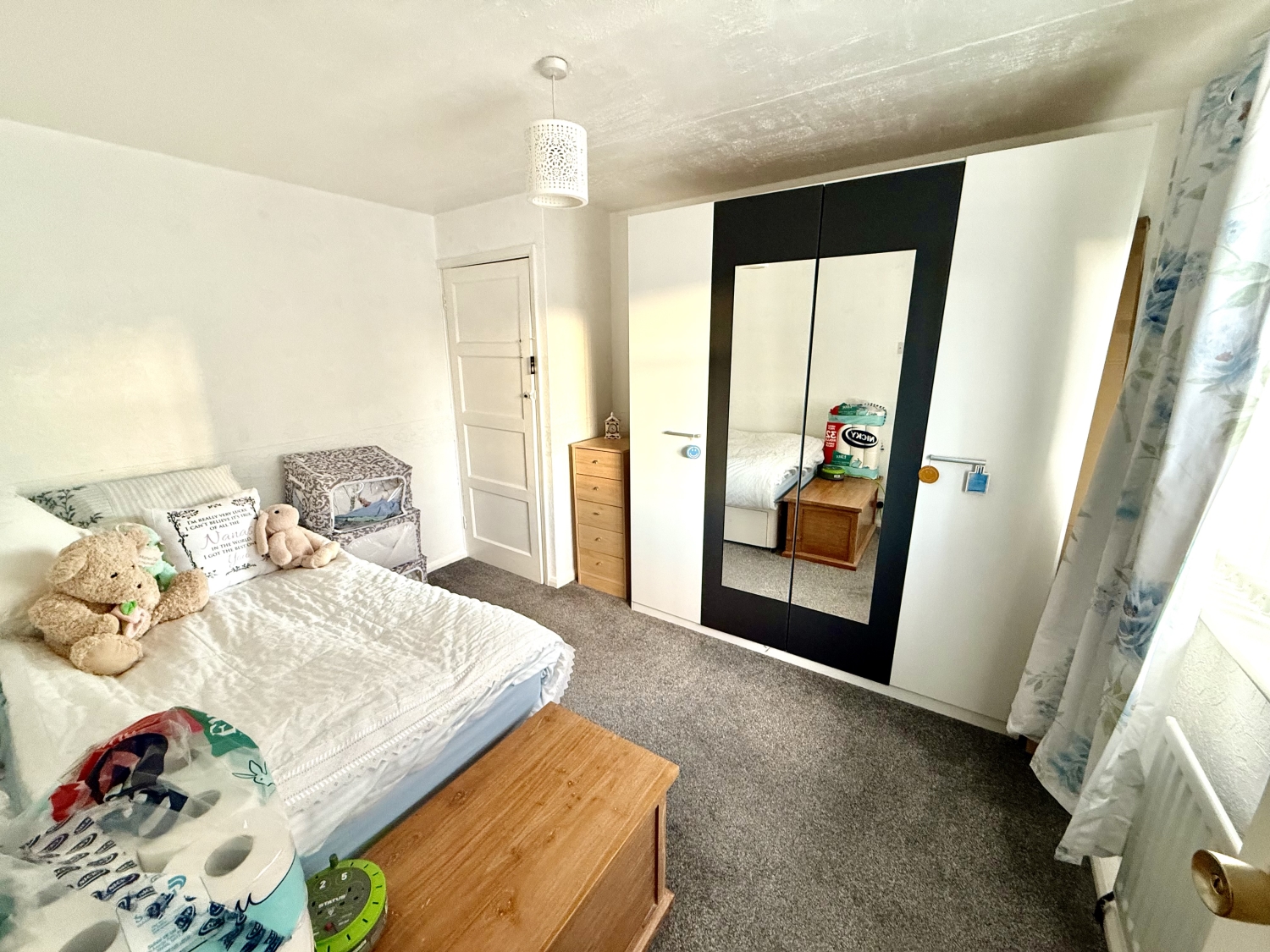 A Well-Presented, Larger-Than-Average Three-Bedroom End Terrace on a Generous Corner Plot – No Chain. Standing proudly on a substantial corner plot, this deceptively spacious three-bedroom end terraced home has been lovingly maintained throughout and offers excellent potential for further development, subject to the usual permissions. Ideally located close to a range of local amenities, transport links, and well-regarded schools, it is perfectly suited to family living. The welcoming entrance hall leads into a bright and comfortable lounge, where a feature fireplace creates an inviting focal point. To the rear, the well-appointed kitchen/breakfast room offers ample storage and workspace, complimented by a useful utility room for added convenience. To the first floor, you'll find three generous, light-filled bedrooms, with the master bedroom benefitting from fitted wardrobes. The layout is completed by a separate W.C. and a practical wet room. Externally, the home enjoys gardens to the front, side, and rear, providing plenty of outdoor space for recreation, relaxation, or further landscaping ideas.  Offered with no onward chain, this charming property presents a wonderful opportunity to create a beautiful family home.
