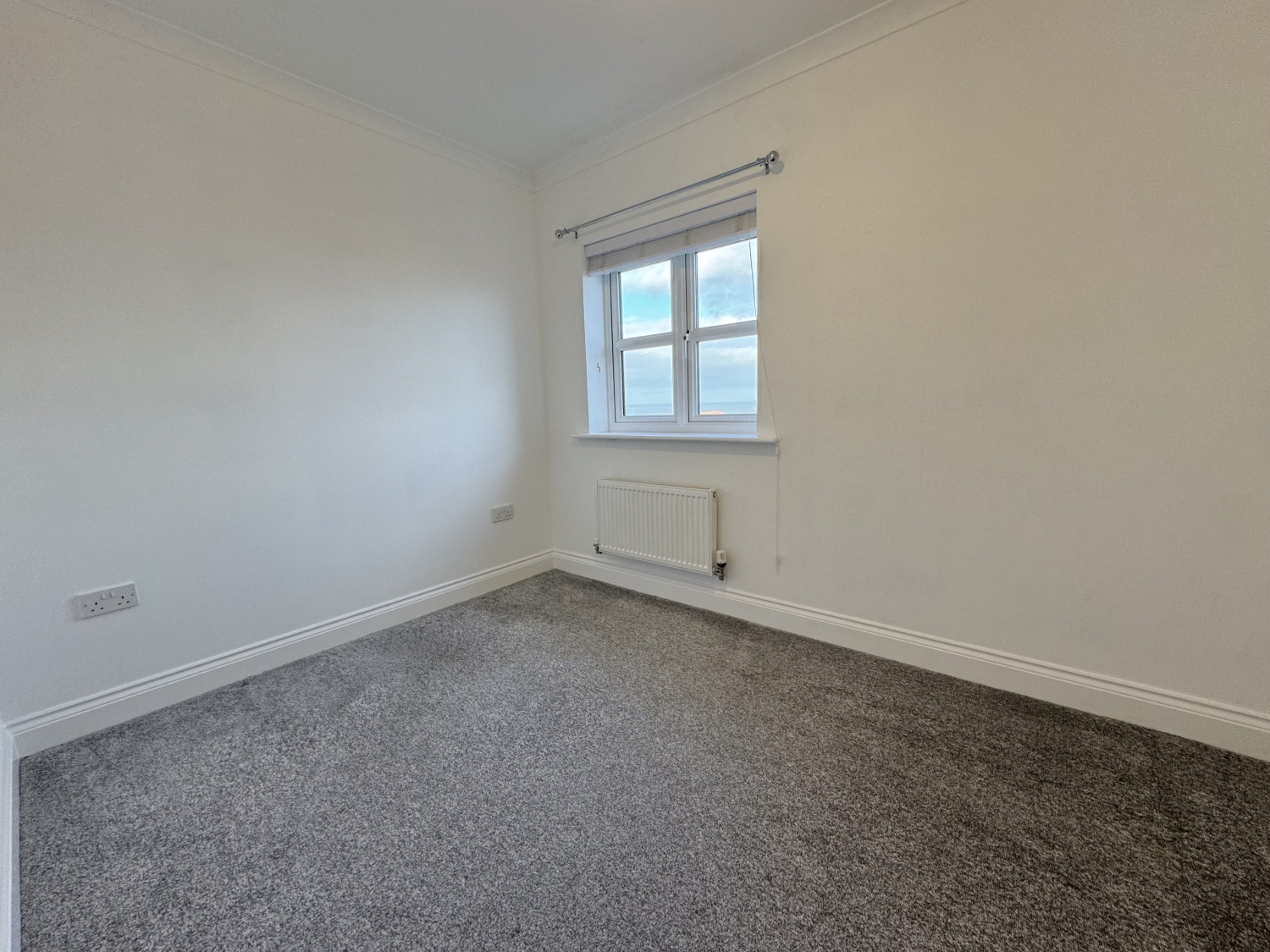 The master bedroom benefits from its own en‑suite, featuring a modern walk‑in shower enclosure. A well‑proportioned second bedroom and a main bathroom complete the accommodation.