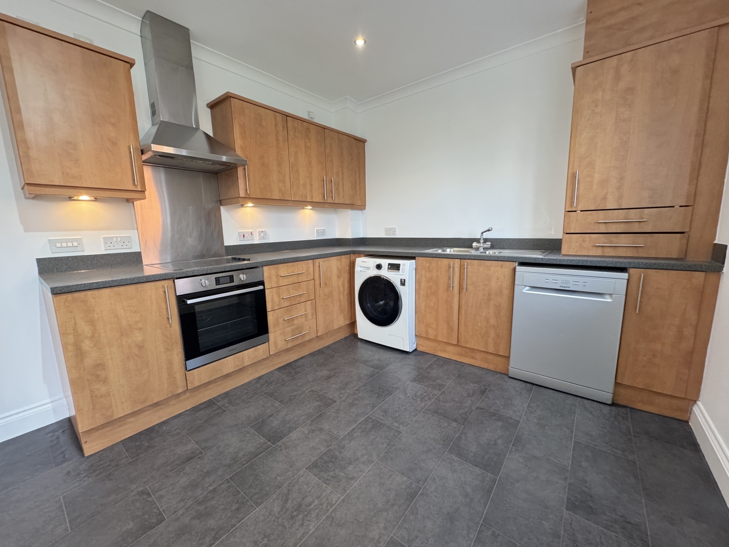 Accessed via a secure and well‑maintained communal entrance, the property opens into an inviting hallway complete with a useful storage cupboard. The spacious lounge is a standout feature, offering superb sea views and flowing seamlessly into a generous kitchen‑diner fitted with an excellent range of wall and base units.