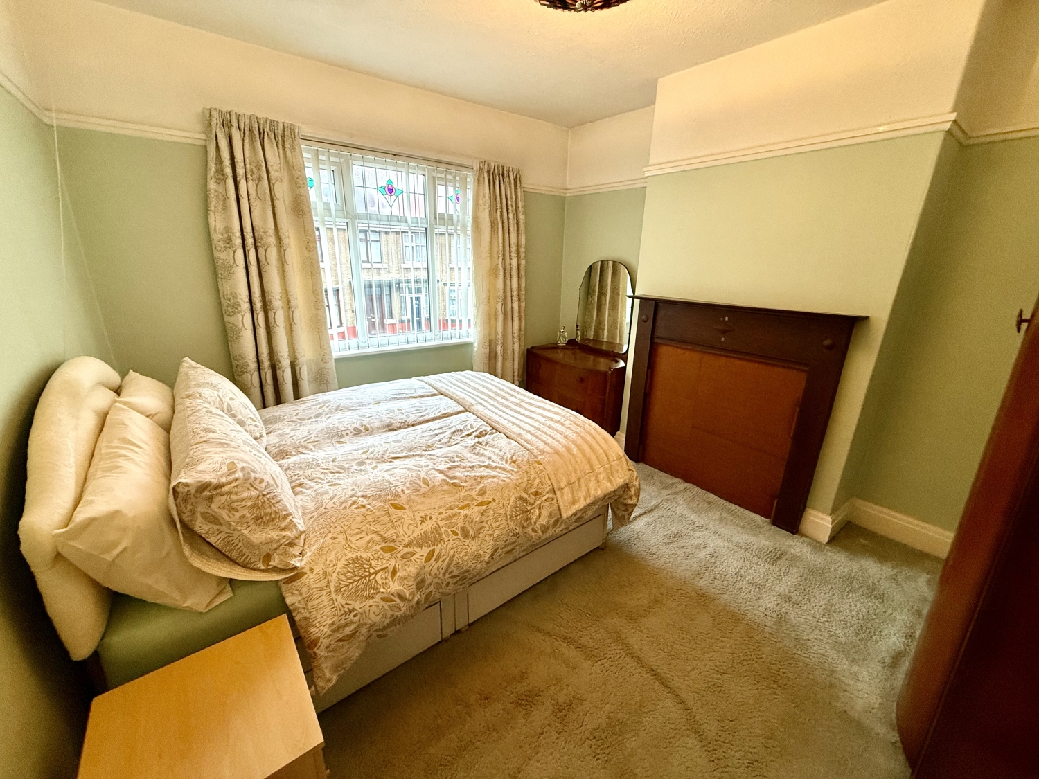 Feature fire place, picture rail and double glazed window to the front.
