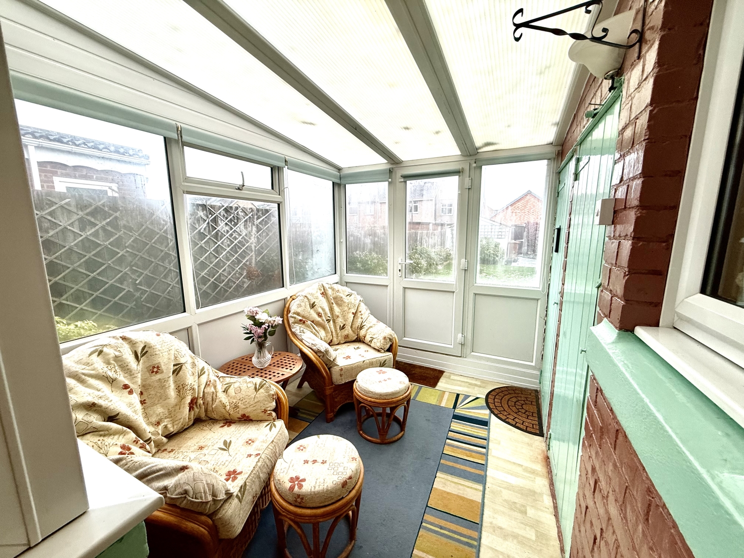 Pitched acrylic roof, double glazed UPVC windows to the rear and to the side, UPVC external door and two useful storage units.