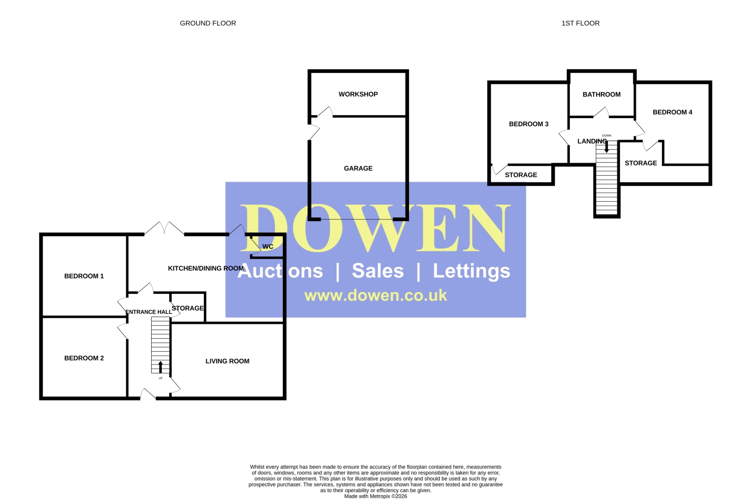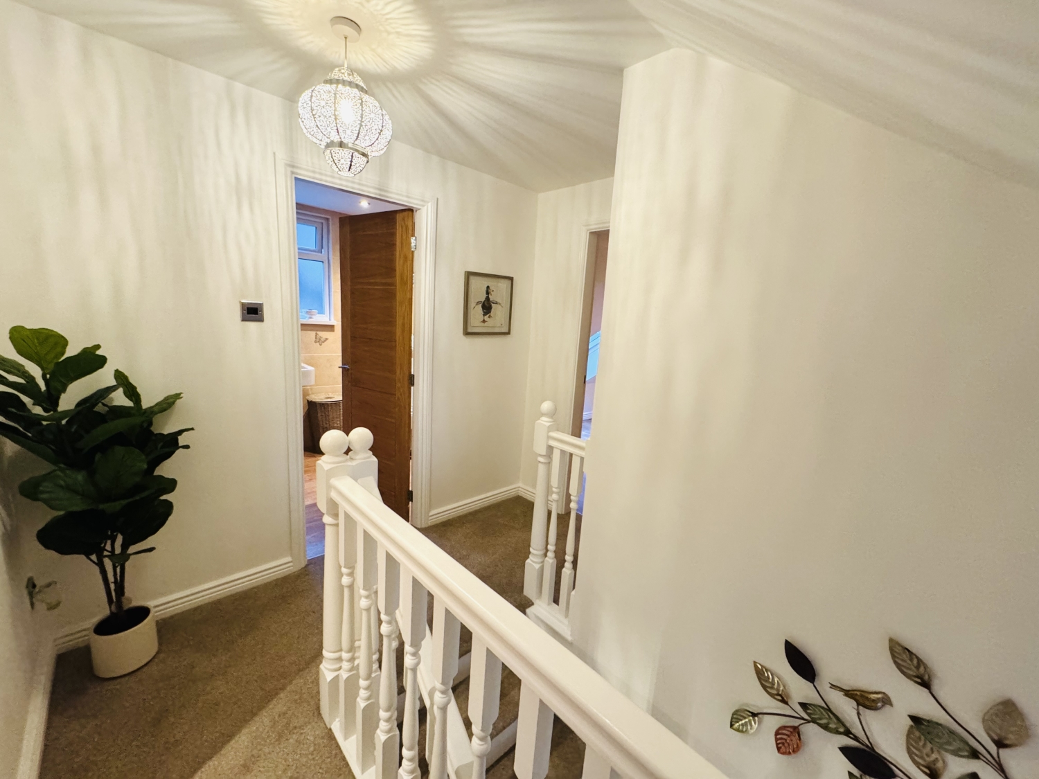 The first‑floor landing leads to two further bedrooms, including a generous double bedroom and a fourth bedroom with its own storage cupboard. A well‑appointed family bathroom serves the upper level.