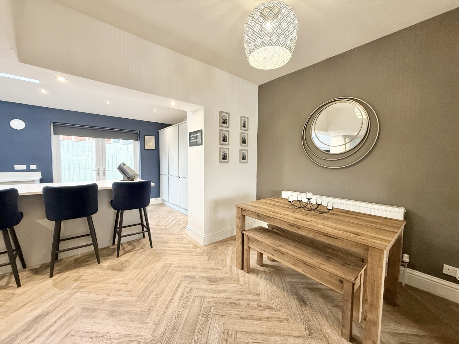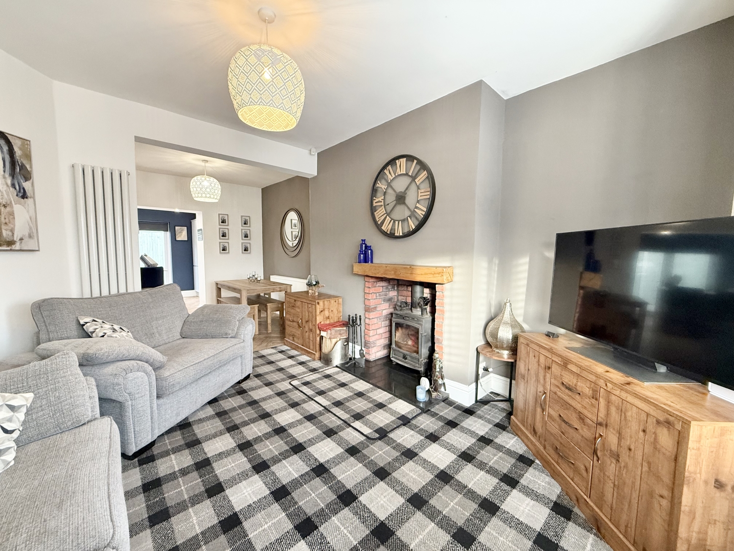 Offers Over £210,000A truly stunning and greatly extended three-bedroom semi-detached family home, beautifully presented throughout and significantly improved by the current owners to an exceptional standard. This impressive property offers spacious, modern living with high-quality finishes and a layout perfectly suited to family life. The accommodation begins with an entrance porch leading into a welcoming hallway with stairs to the first floor. The lounge is warm and inviting, featuring a striking multi-fuel burner as a focal point. This flows seamlessly into the dining area and onwards to the show-stopping extended kitchen, which boasts integrated appliances, a stylish central island, skylight, and patio doors opening directly onto the rear garden—flooding the space with natural light and creating an ideal entertaining area. The ground floor further benefits from a utility room with internal access to the integral garage, and a larger-than-average modern family bathroom suite. Elegant herringbone flooring runs throughout the ground floor, enhancing the home's contemporary feel. To the first floor are three generously sized bedrooms, with the principal bedroom enjoying the luxury of a modern en-suite bathroom. Externally, the property continues to impress. The rear garden is fence-enclosed, fully paved for low maintenance, and includes a practical wood store. To the front, a block-paved driveway provides off-street parking for multiple vehicles and leads to the garage, which is accessed via an electric door. Additional benefits include double glazing and gas central heating throughout. Situated in a popular and well-established area, close to local amenities, schools, and excellent transport links, this outstanding home is perfectly suited for families seeking space, style, and convenience. An exceptional property with undeniable wow factor—early viewing is highly recommended.