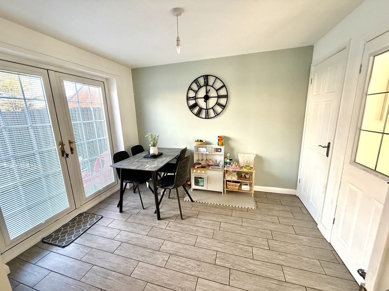 This immaculate three-bedroom semi-detached home is truly turn-key ready, allowing you to move straight in and enjoy from day one. Maintained to an exceptional standard throughout, this spic-and-span property will appeal to a wide range of buyers, particularly first-time purchasers seeking a stylish and low-maintenance home. Situated on a popular residential estate and surrounded by properties of similar calibre, the home benefits from a driveway and a generous enclosed rear garden, complete with paved and decked patio areas—ideal for relaxing or entertaining. The bright and airy accommodation comprises a welcoming vestibule, a light-filled lounge, and a dining room with French doors opening onto the garden. A modern refitted kitchen with built-in cooking appliances completes the ground floor. To the first floor are three beautifully presented bedrooms, along with a contemporary and stylish family bathroom. This is a superb opportunity to acquire a ready-to-move-into home in a highly desirable location.