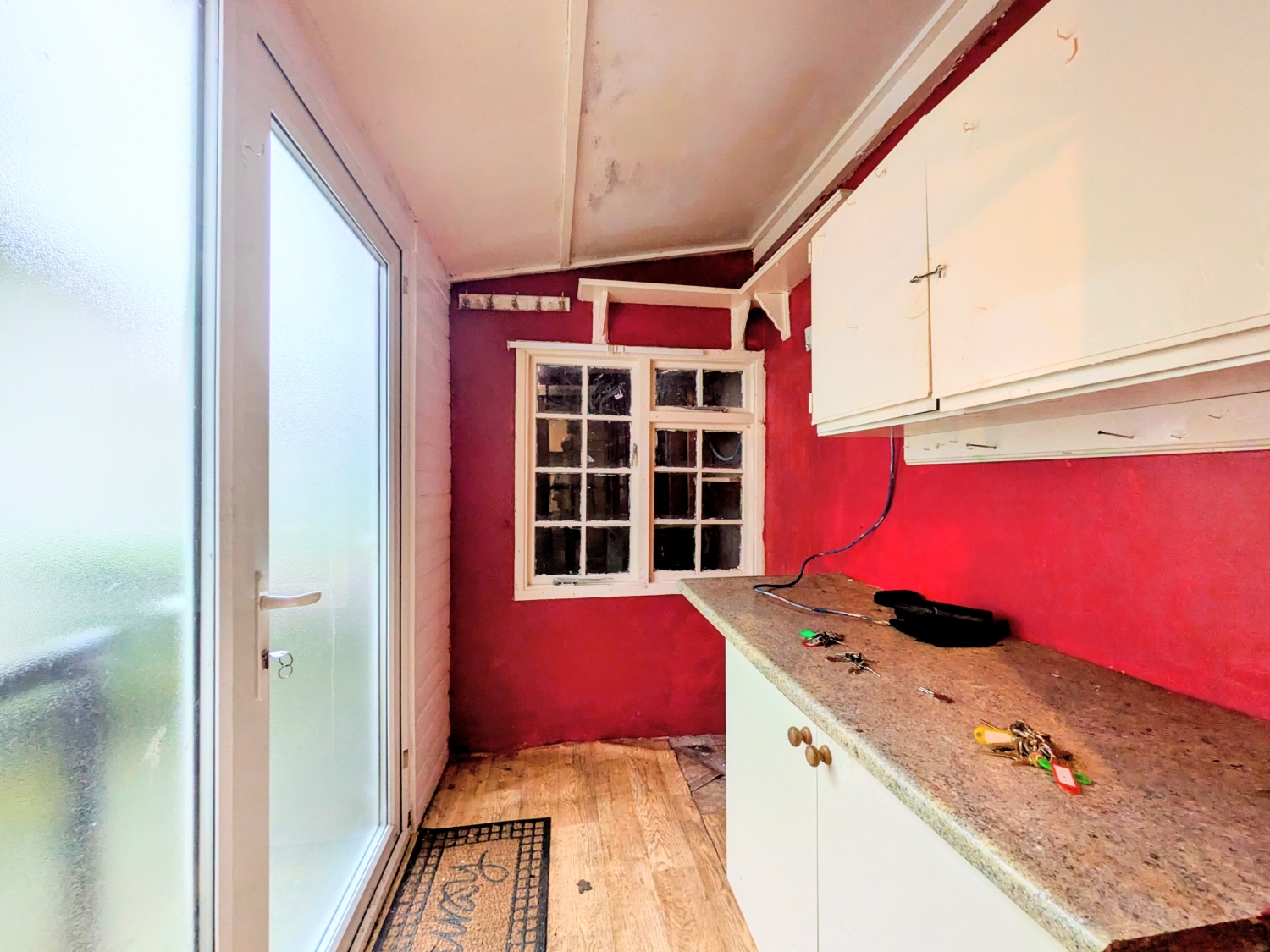 The ground floor features spacious living accommodation with plenty of scope to reconfigure if desired, as well as a convenient downstairs wet room. To the rear, a sun room/workshop adds valuable extra space—ideal for storage, DIY projects, or future development depending on the buyer's plans. Upstairs, the property offers two well‑proportioned bedrooms, with ample space to incorporate an upstairs bathroom as part of a full renovation, making the layout even more practical for modern living.