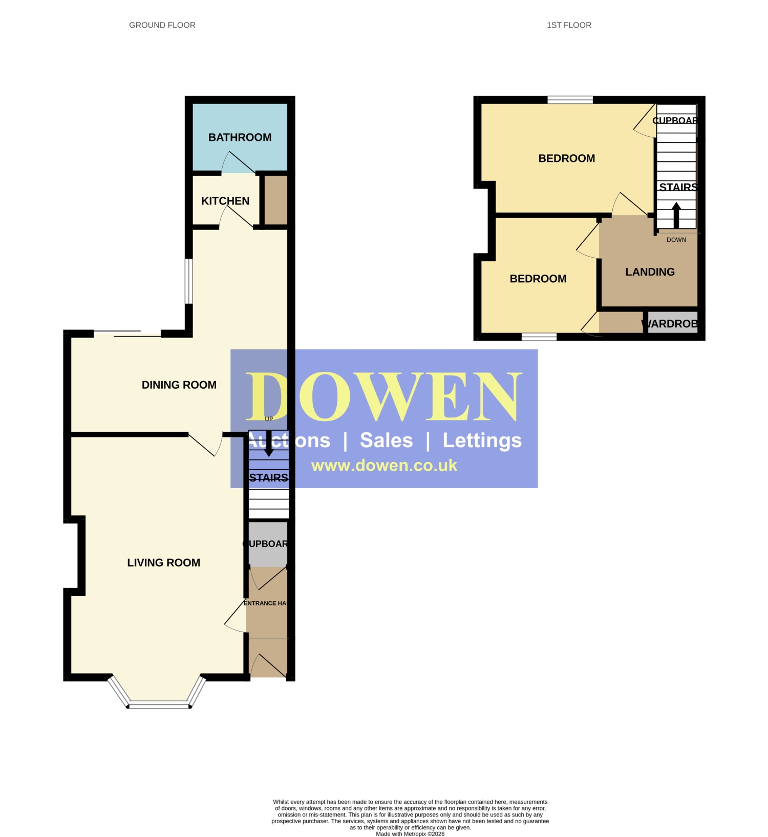 Upstairs, the first floor hosts two well‑proportioned bedrooms, both offering comfortable living space.