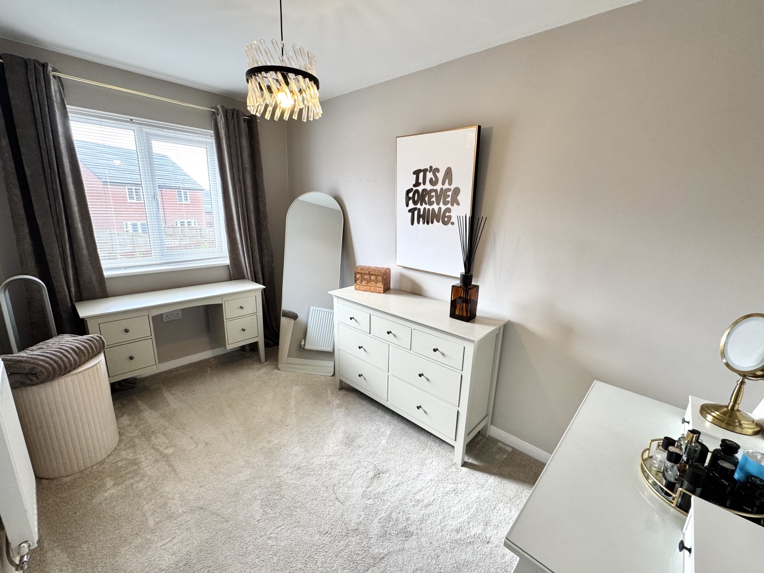 Double glazed windows to both sides and the rear elevation, patio doors to the rear garden, 2x radiators, storage cupboard, feature panelling to wall