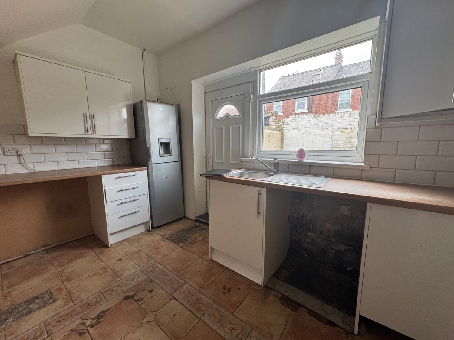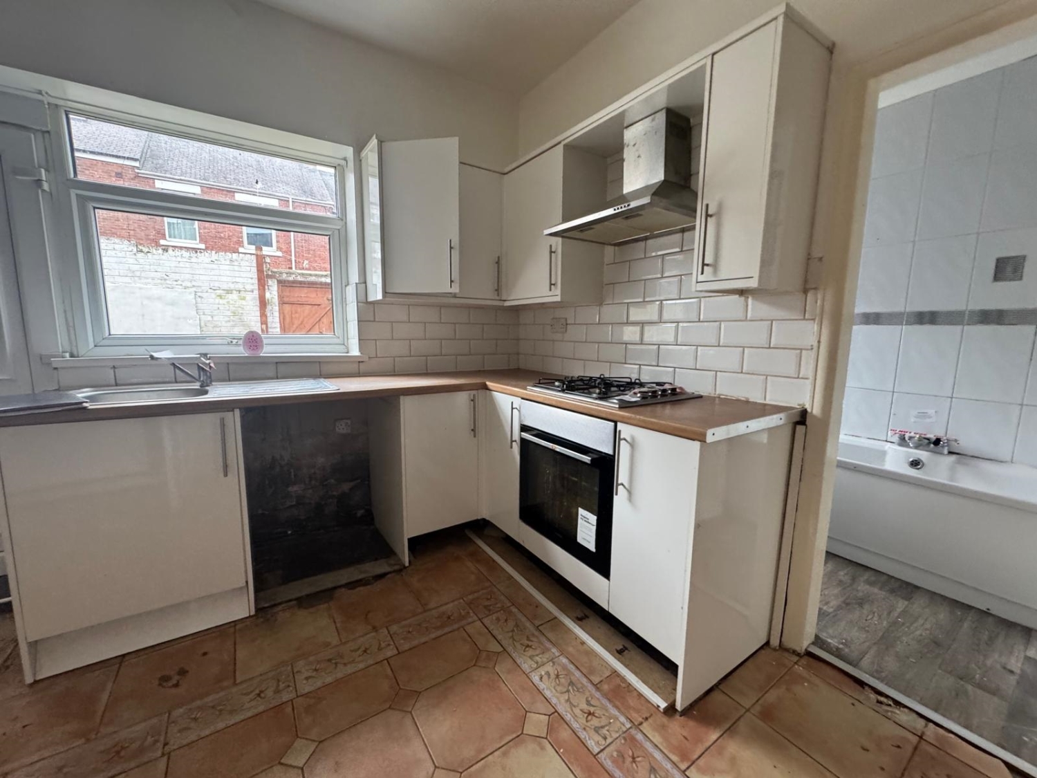 The accommodation begins with an inviting entrance hallway leading to a comfortable, well‑proportioned lounge and a kitchen fitted with a range of wall and base units, offering ample storage and workspace. A rear door provides direct access to the enclosed yard, perfect for low‑maintenance outdoor use. A family bathroom completes the ground floor layout.