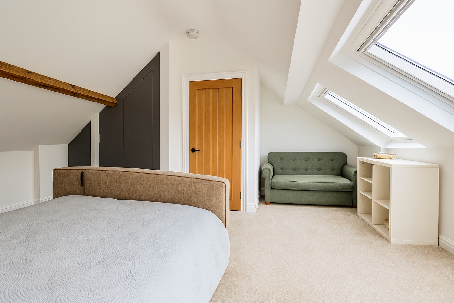 To the first floor are three well‑proportioned bedrooms, alongside a modern family bathroom and a separate cloakroom for added convenience. The top floor has been converted to form an impressive master bedroom, complete with fitted wardrobes and a Velux window providing plenty of natural light.