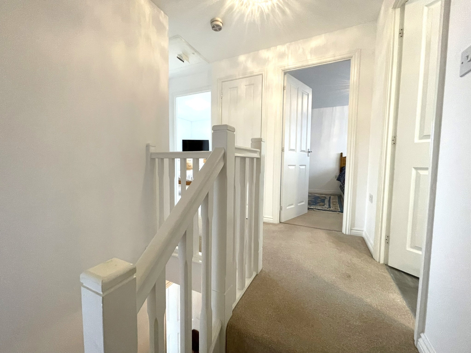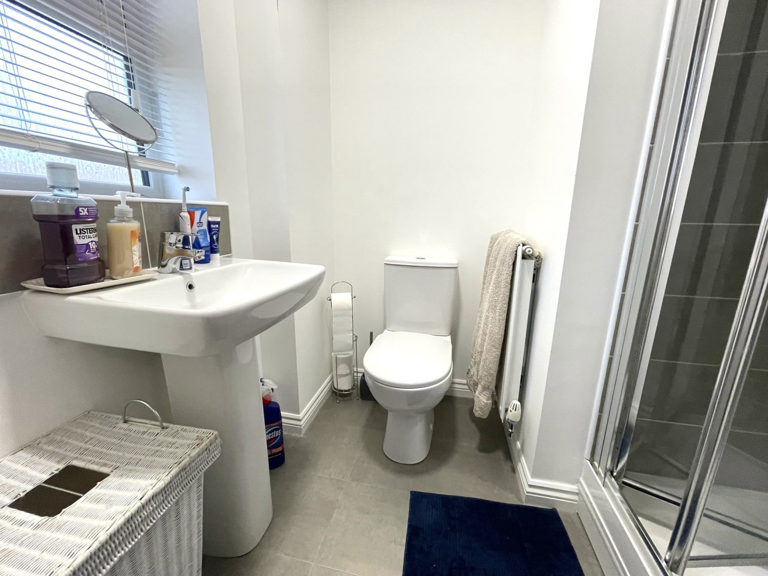 To the first floor, a staircase leads to a well‑proportioned landing serving three bedrooms. There are two double bedrooms, with the master bedroom benefitting from its own en‑suite shower room, as well as a large single bedroom. A stylish family bathroom with WC completes the upper floor accommodation.