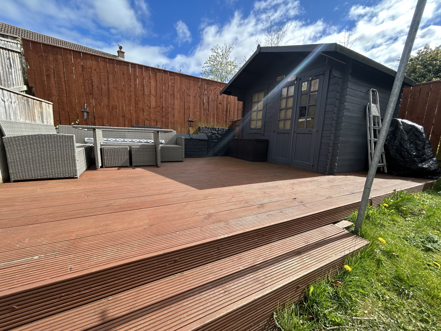 Externally, the property boasts an enclosed rear garden with both lawned and patio areas, along with right‑of‑way access and parking facilities.
