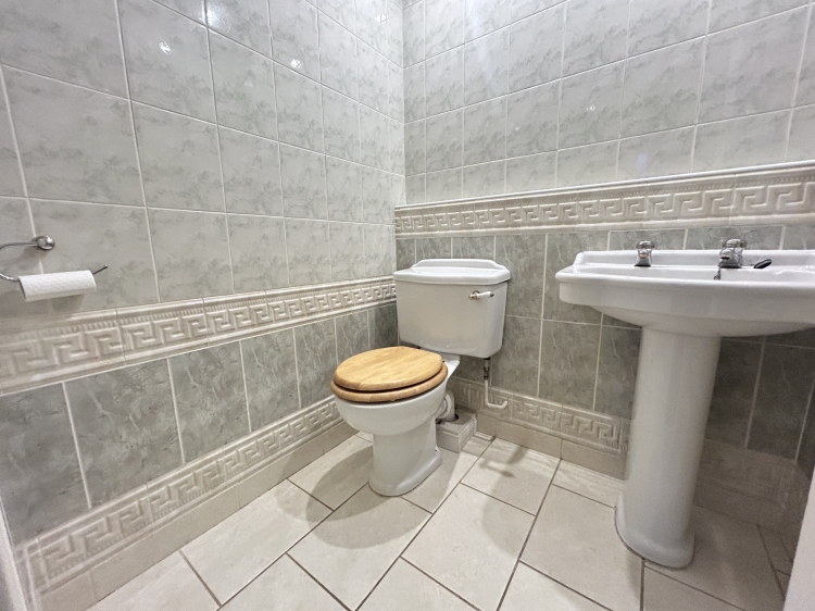 Refurbished with wc, pedestal hand basin, fully tiled walls, tiled floor, radiator, recessed downlights.