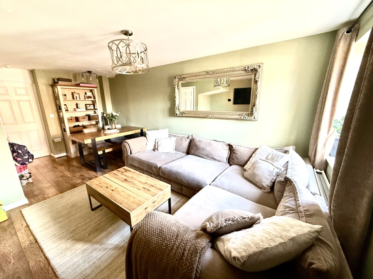 5.9436m x 3.5306m - 19'6" x 11'7"<br>Double glazed window to the front, double central heating radiator, storage cupboard, stairs to the first floor and laminate flooring.