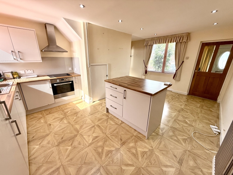 5.3086m x 4.0132m - 17'5" x 13'2"<br>Fitted with a modern range of wall and base units having contrasting work surfaces incorporating a stainless steel sink unit with mixer tap and drainer. Double glazed window to the rear, downlighters, bespoke central heating radiator, under stair storage cupboard, double glazed window to the front, built in oven, hob and stainless steel extractor hood and integrated fridge freezer and dishwasher.