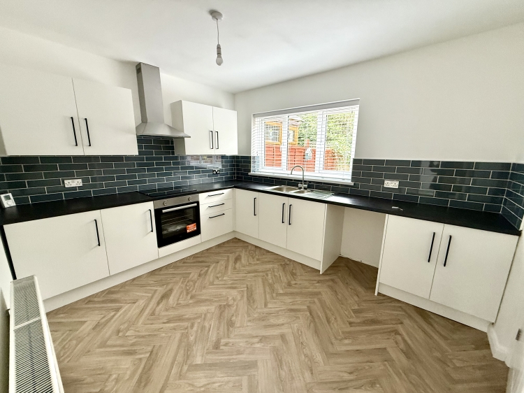 3.5306m x 2.9464m - 11'7" x 9'8"<br>Refitted with a modern range of wall and base units, having contrasting work surfaces, incorporating a stainless steel sink unit with mixer tap and drainer, double glazed window to the rear, eye-catching splashback tiling, built in oven, hob and extractor hood and central heating radiator.