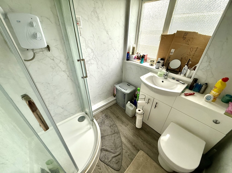 Fitted with a white three piece suite comprising a walk in shower cubicle with Triton shower, wash hand basin and WC. Double glazed frosted window to the rear state of the art panel walls and ceiling, extractor fan and chrome heated towel rail.