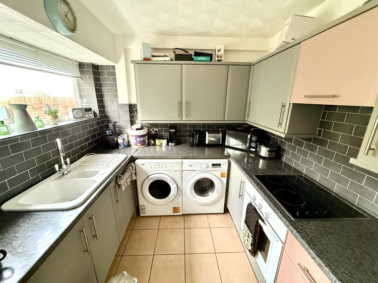 3.2004m x 2.3622m - 10'6" x 7'9"<br>Fitted with a range of wall and base units having contrasting work surfaces, incorporating a white sink unit with mixer tap and drainer. Double glazed window to the rear, UPVC external door, under stair recess, tiled flooring, built in oven, hob and extractor fan and splashback tiling.