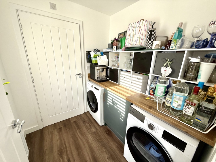 Double central heating radiator, shaker base units, contrasting work surfaces with matching splashback, automatic washing machine, double glazed window to the rear, double central heating radiator and Karndean flooring.