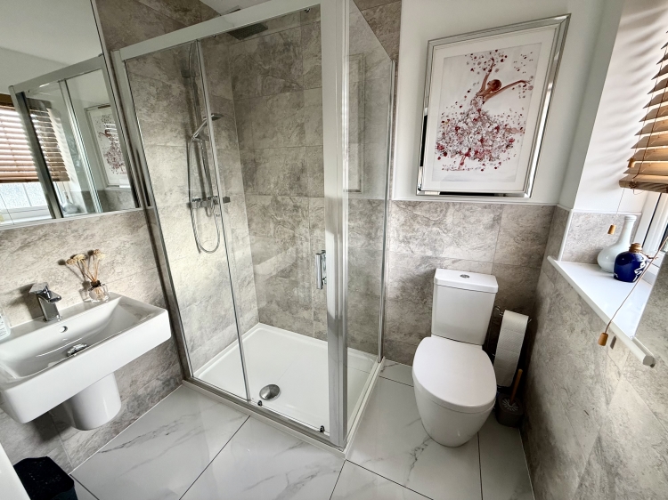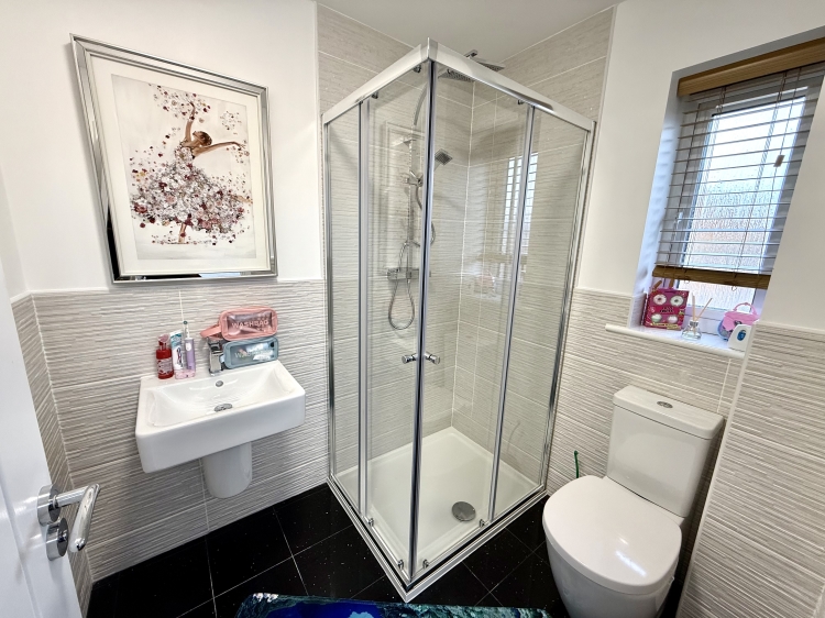 Fitted with an upgraded three piece suite comprising a walk in shower cubicle, wash hand basin and WC. Double glazed frosted window to the rear, beautiful modern splashback tiling, tiled flooring and central heating radiator.
